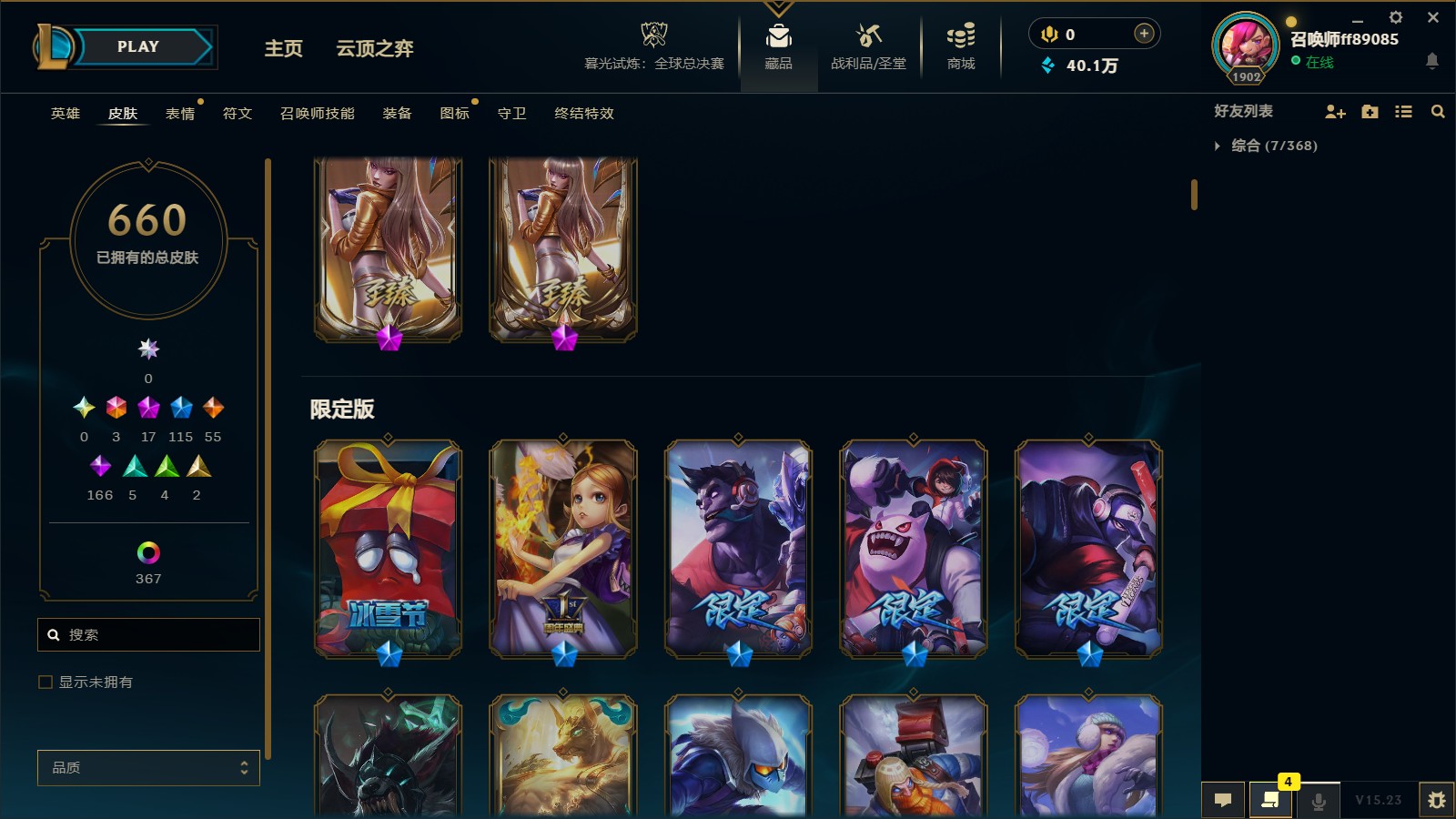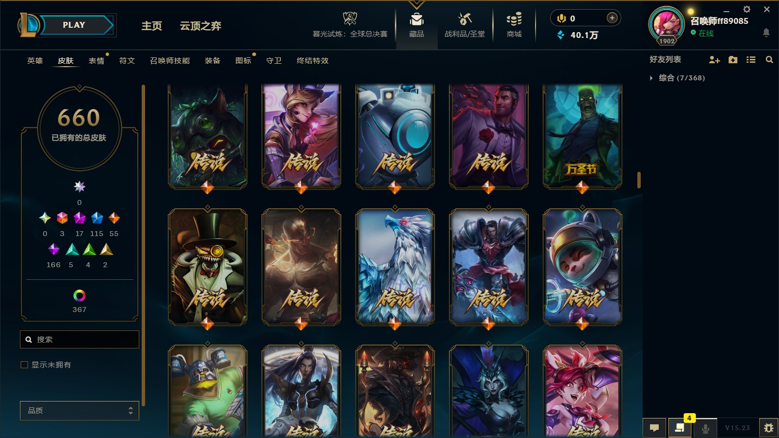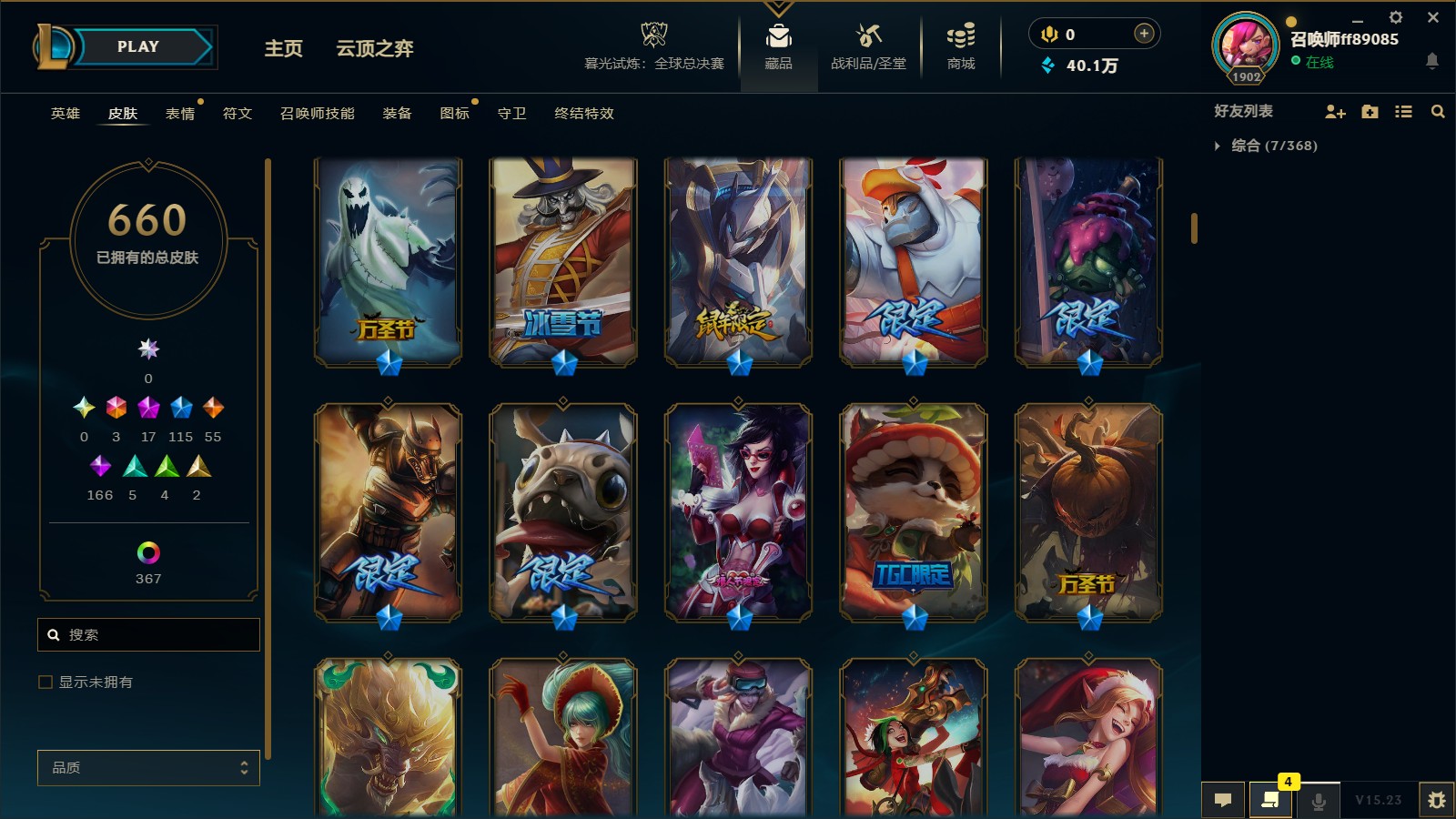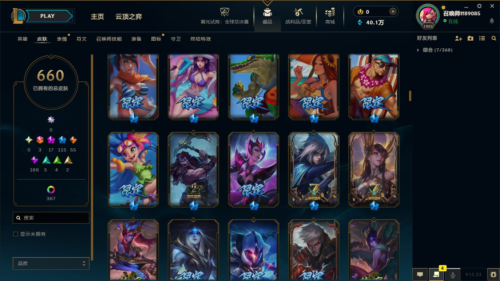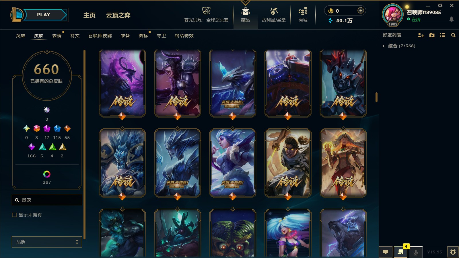 - 神话皮肤数量: 17