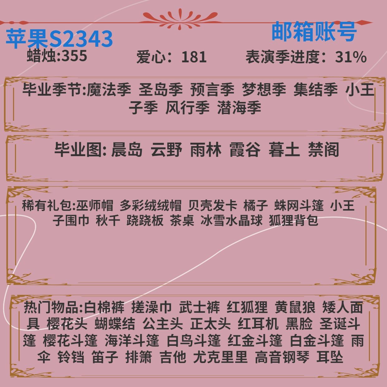 【苹果】 邮箱登录武士裤耳坠斗篷樱花头公主头正太