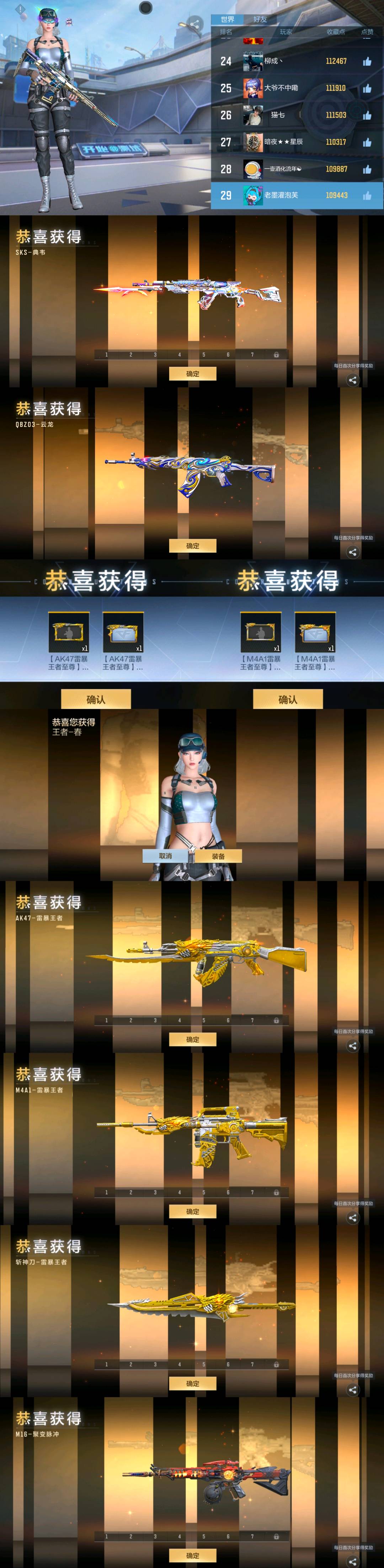 步枪:4蔷薇 王戮至尊 ak雷暴 m4雷霆 风翼神龙 2波赛冬