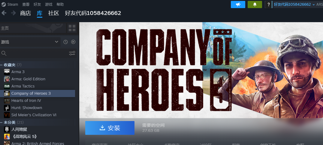 steam游戏 武装突袭3/文明6/英雄连3/钢铁雄心4/ 可加好友可联机