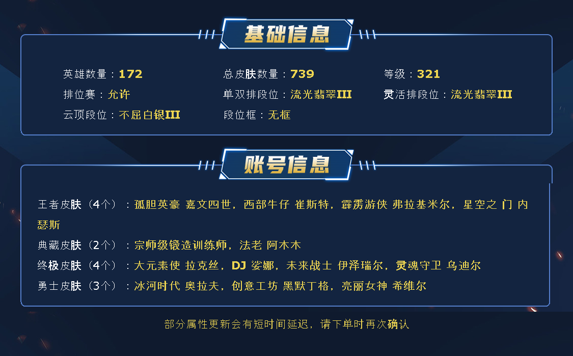 【全英雄可排位411原皮肤】灵魂莲华厄斐琉斯、光明哨兵皎月、国王佛耶戈、太空律动格温、神龙尊者炎龙瑟提、新K/DA卡莎、春晖神女拉克丝、电玩女神阿狸、电玩女神女枪、龙年琴女、虎痴之拳蔚、玉净夜叉女警、美猴王孙悟空、紫金罗刹莫甘娜、神龙烈焰金克丝、花木兰、张辽文远、K/DA ALL OUT卡莎、灵能特工莎弥拉、屠龙勇士图奇、古神梦魇、大元素使拉克丝、灵魂守卫乌迪尔、未来战士伊泽瑞尔、DJ琴女、大魔王提莫、地底世界、电玩人马、冠军之箭、鸡里奥、克格汪、送披萨的小姐姐、万圣节女枪、觅心萝莉金克丝、觅心猫猫悠米、觅心游侠卢锡安、觅心魔灵发条、觅心之翼奎因、死亡誓约维克托、甜心宝贝安妮、甜心宝贝琴女、甜心之翎洛、甜心之羽霞、勇者阿狸、暗星锤石、黑夜使者亚索、黎明使者锐雯、黎明使者奶妈、神拳李青、未来战士女警、西部魔影卢锡安、星守阿狸、星守金克丝、源计划薇恩、源计划寒冰、貂蝉、超级英雄凯南、黑夜使者厄斐琉斯、柯基库奇、小蜜蜂提莫、孙尚香、星守女枪、星守奶妈、腥红之月剑魔、腥红之月蛮王、玉剑传说娜美、玉剑传说莫甘娜、玉剑传说剑圣、玉剑传说风女、战斗校长悠米、战斗学院拉克丝、K/DA阿卡丽、K/DA卡莎、K/DA阿狸、K/DA寡妇