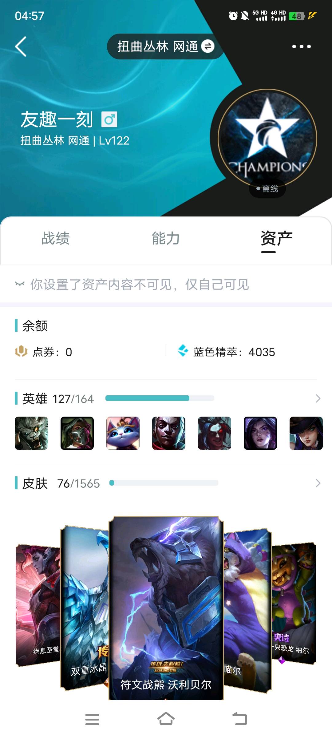 - 臻彩皮肤数量: 0