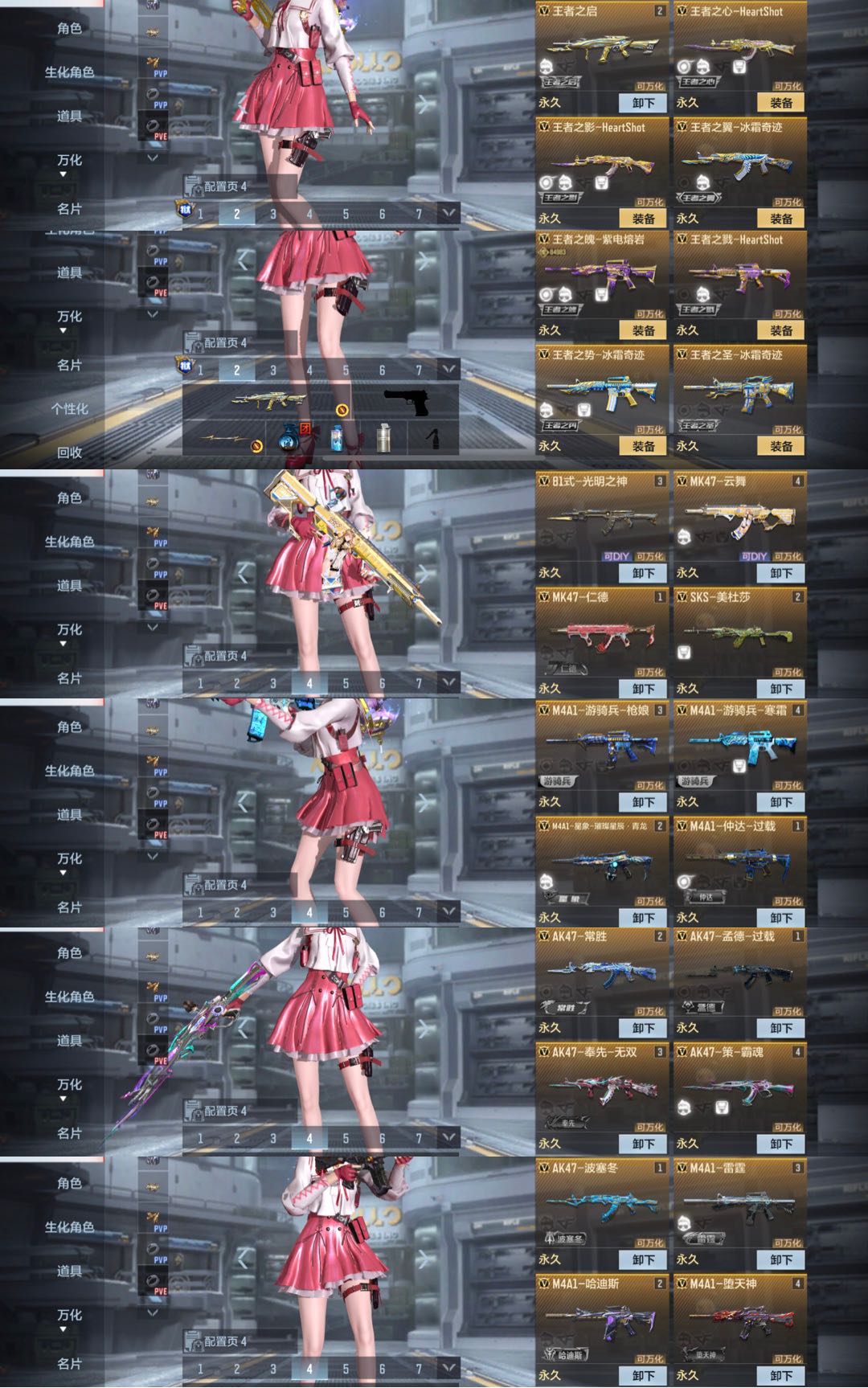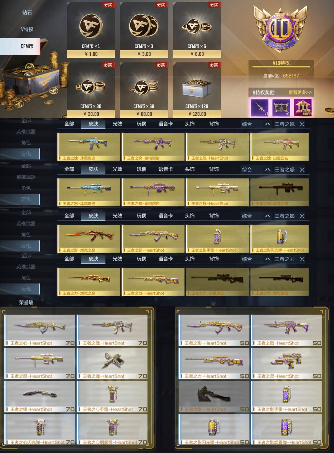 仁德,璀璨星辰星象四象套,仲达过载套,奉先无双,策霸魂,孟德过载,常胜套,游骑兵枪娘,游骑兵寒霜,光明之神81,美杜莎,王神,云舞,宙斯套,雷霆巴雷特,雷霆m4,波塞冬套,哈迪斯套,幻神,妙才过载,太史慈