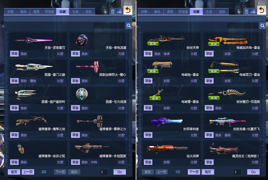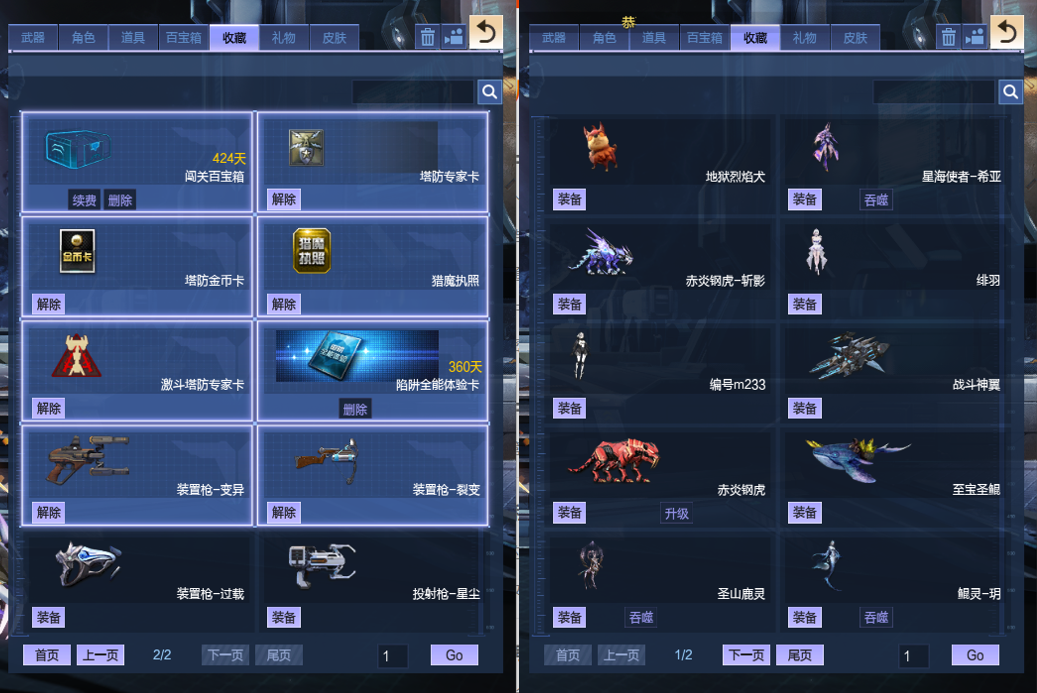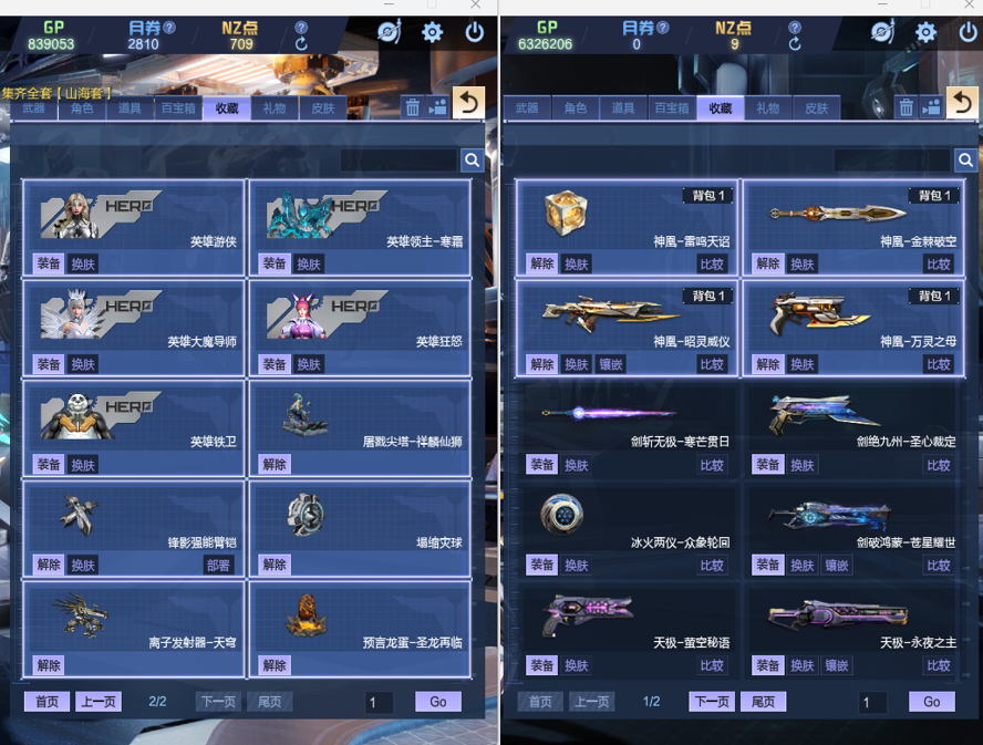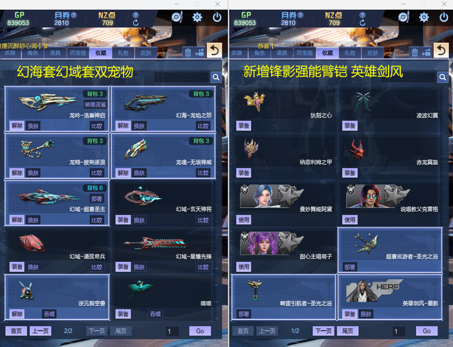 绀蓝暗域套、英雄墨韵、英雄剑风龙太子、精绝女王传奇觉醒、金蝰焚天、三级百宝箱、塔防全能卡、超梦革新之戒、朱羽双鸾、幻彩天枢、音浪增伤三角色、S战甲凌空飞羽、凌波幻翼、赤龙冥盔、纳菲利姆之甲、幻海套喳喳幻域套双僚机逆元裂空兽、山海套四玉佩、天启左轮湮灭之影、锋影强能臂铠、英雄剑风墨影狂怒铁卫大魔导师领主-----等等装备太多不一一赘述