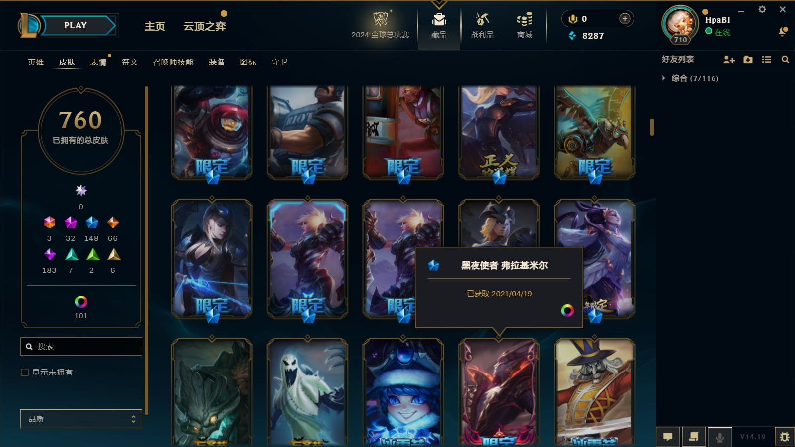 1200皮肤〓33至臻海克斯〓摄魂恐惧〓穿星龙瞎〓黑夜吸血鬼〓鼠年瑟提舞剑仙〓黑夜黎明天煞劫