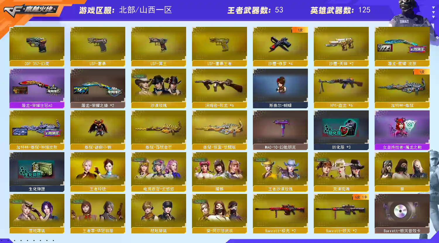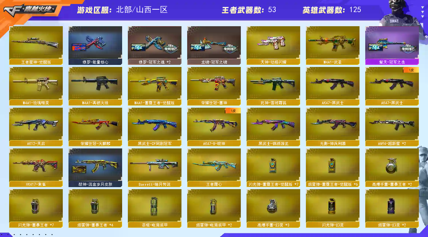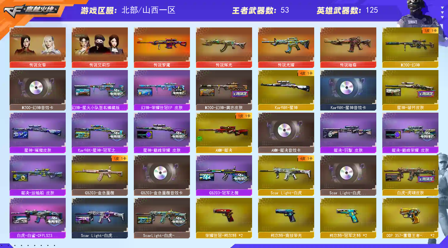 🔥副武器:冠军之特x2🔥COP雷霆王者x2🔥世冠柯尔特x2🔥竞技特🔥usp雷暴🔥COP幻灵🔥6天神修罗🔥