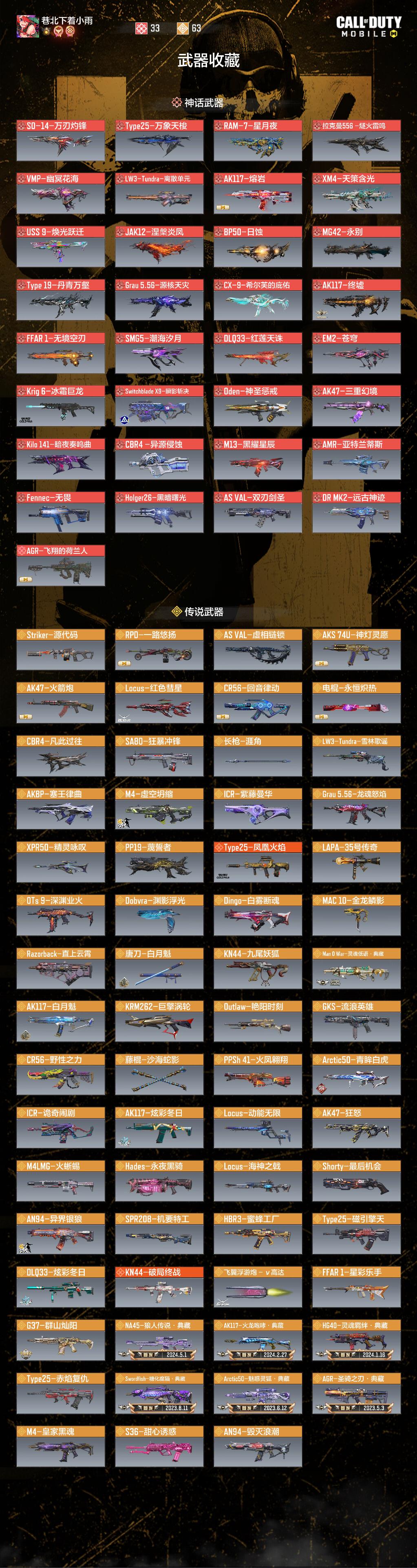 满级拉克曼556-燧火雷鸣、SO-14万刃灼锋 Type25-万象天梭 RAM-7-星月夜 VMP幽冥花海 LW3-Tundra-离散单元 XM4天策含光 AK117-熔岩 USS 9-焕光迁跃 JAK12-涅槃炎凤 BP50-日蚀 MG42-永别了战争Type 19-丹青万壑 Grau 5.56-源核天灾 CX-9-希尔芙的庇佑
