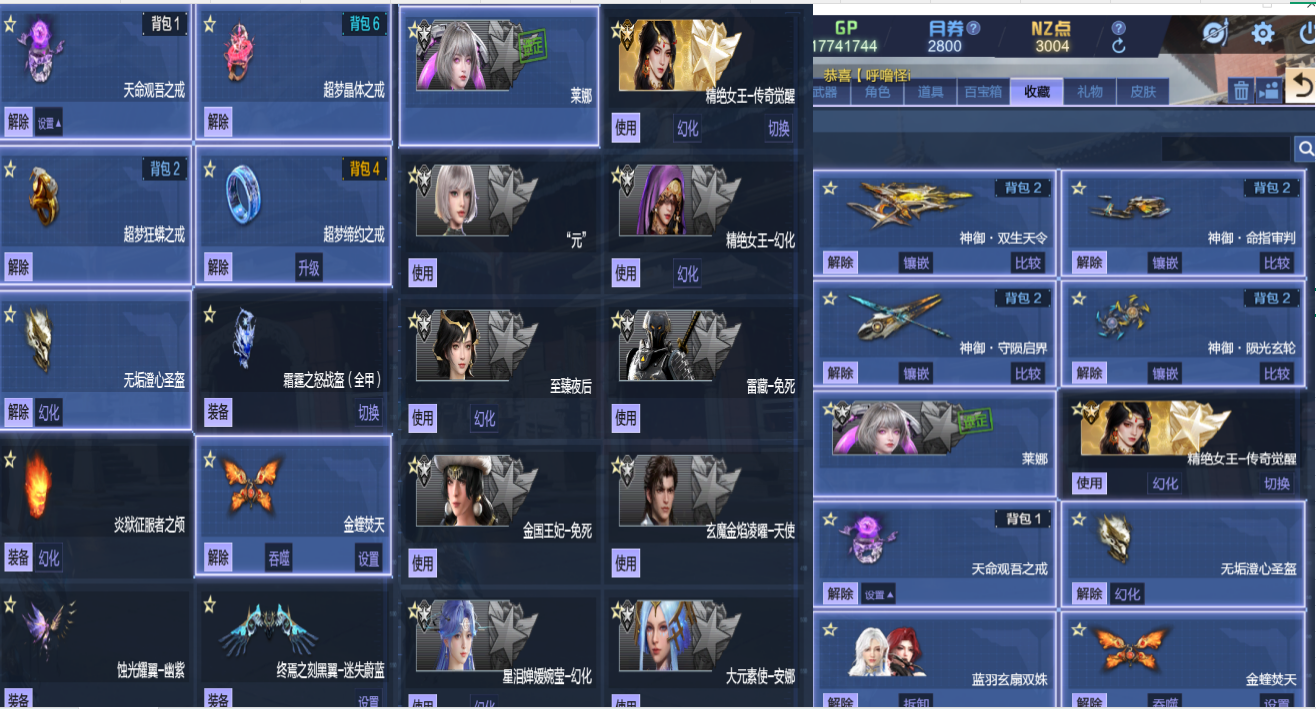 26.1.8新增:莱娜 满配神御 天命戒指 雷霆之怒战盔