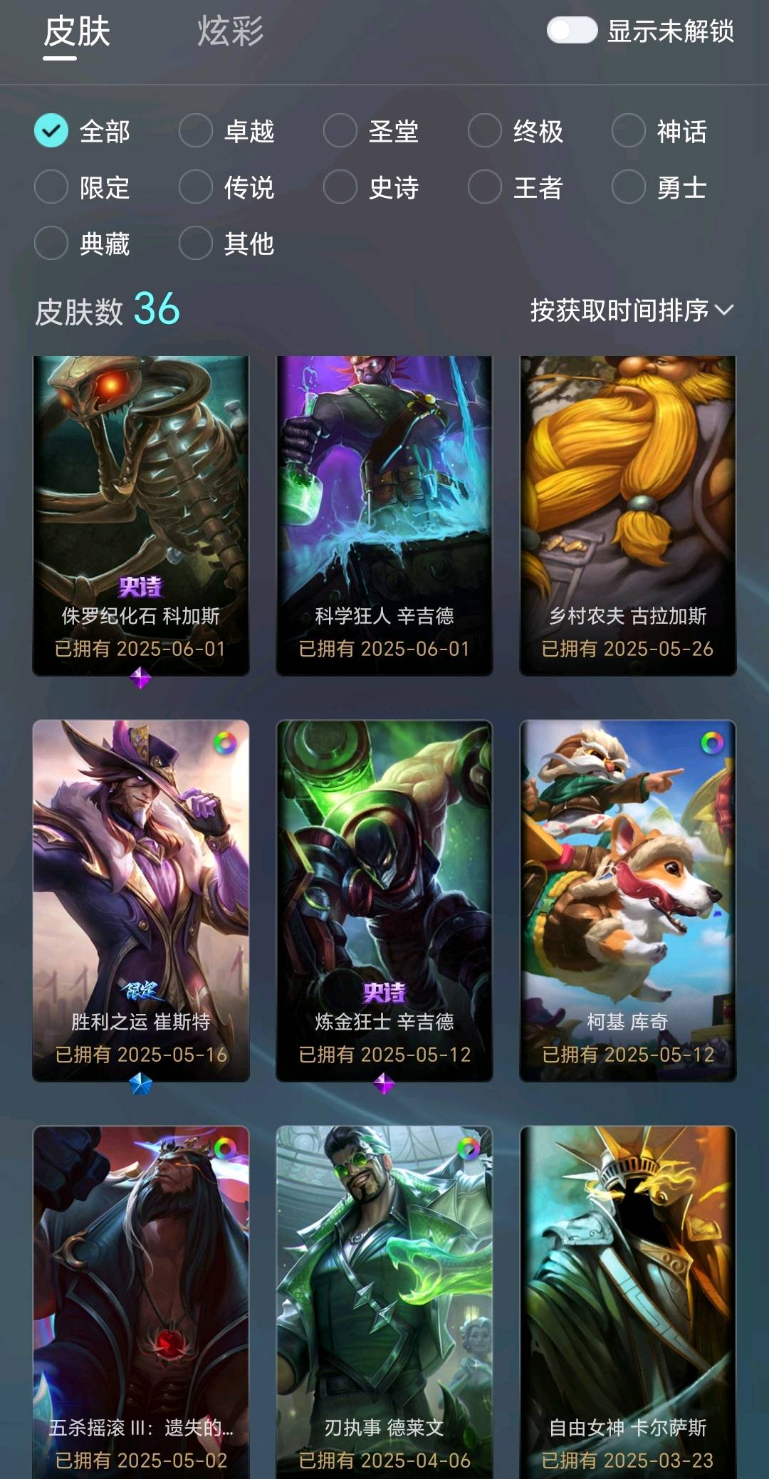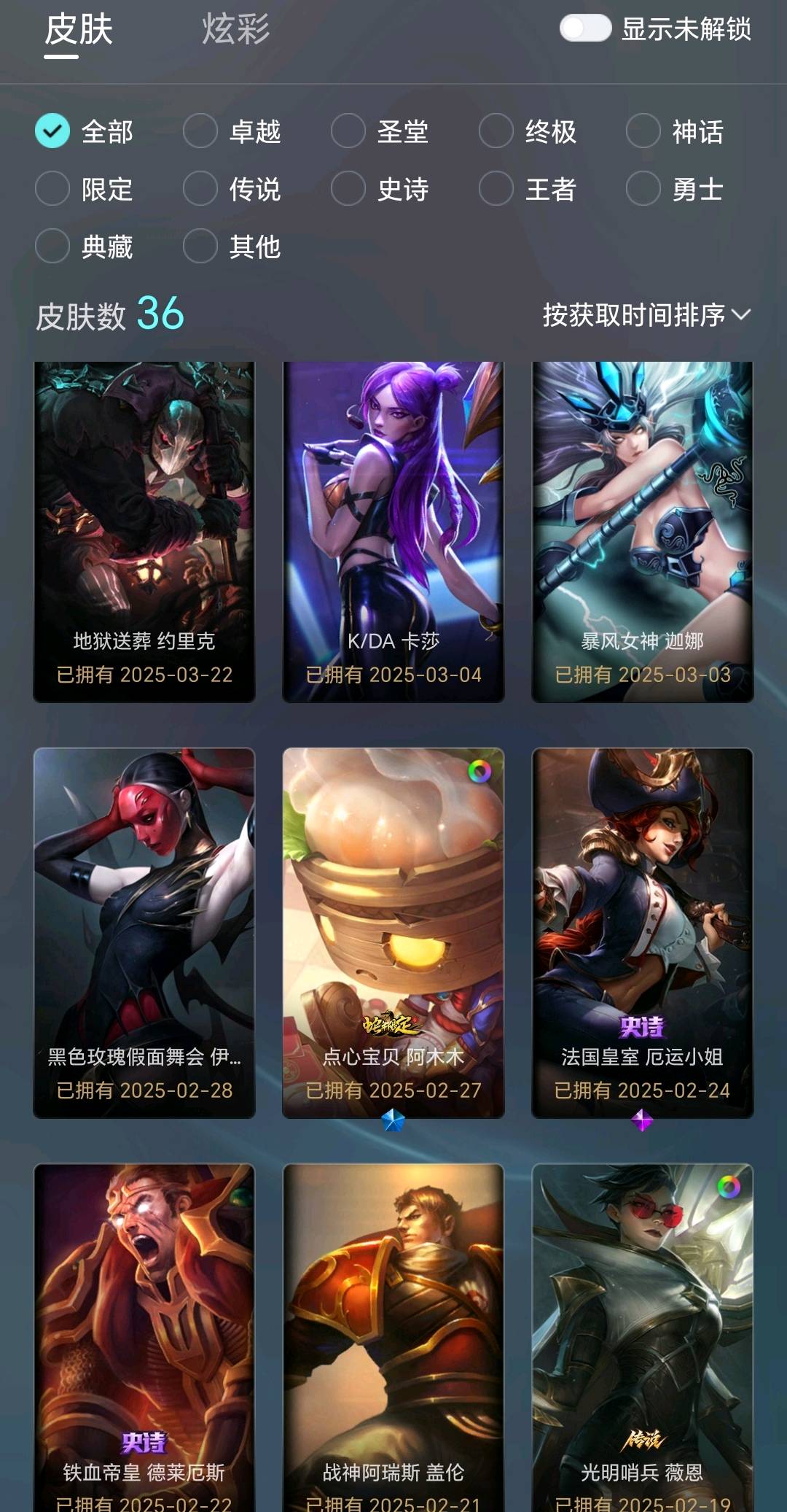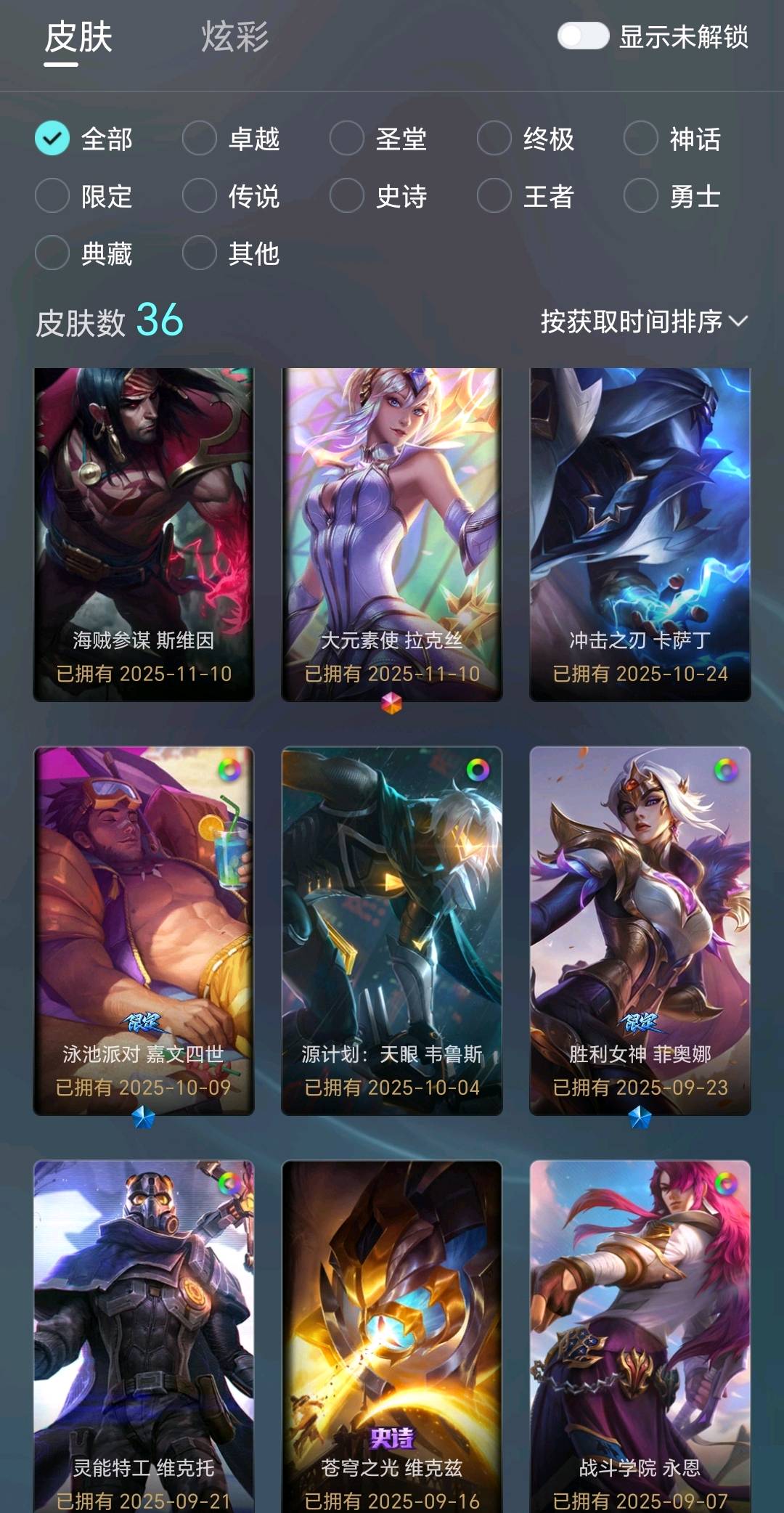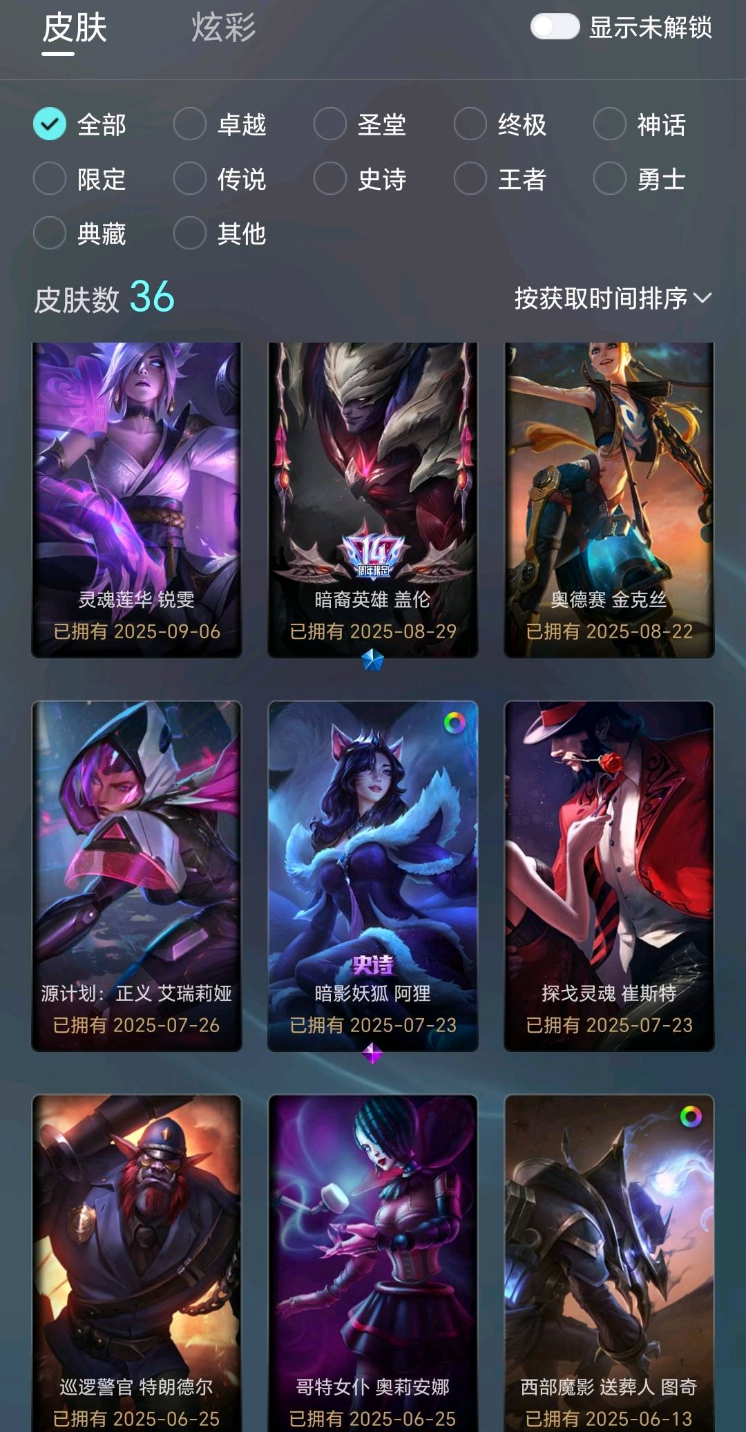 大元素使拉克丝⭐光明哨兵薇恩⭐灵魂莲华锐雯⭐战斗学院永恩⭐西部魔影卢锡安⭐雷神杰斯⭐刃执事德莱文