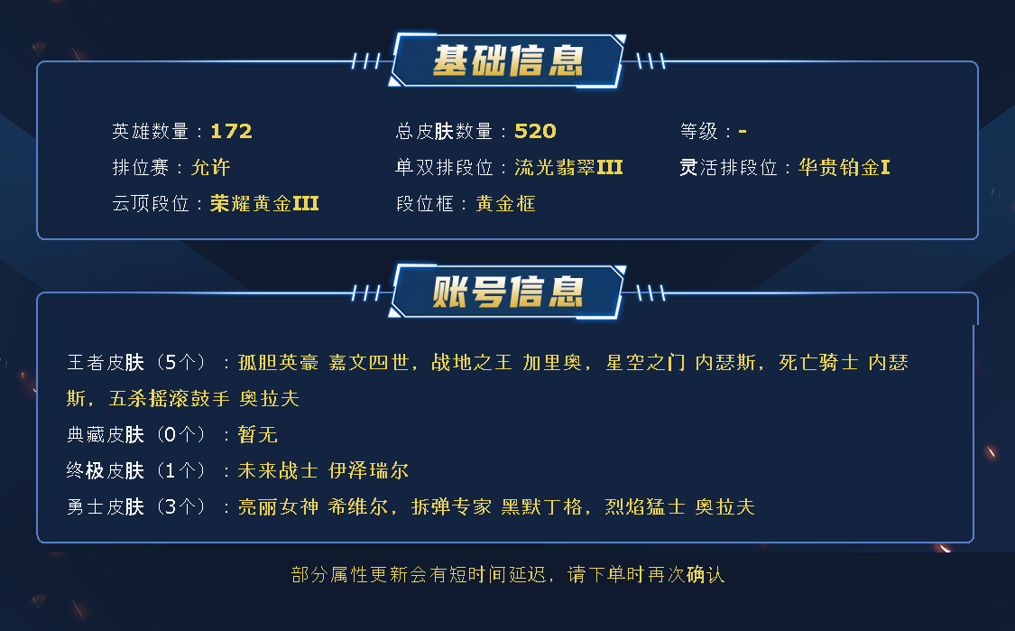 - 云顶段位: 荣耀黄金Ⅲ