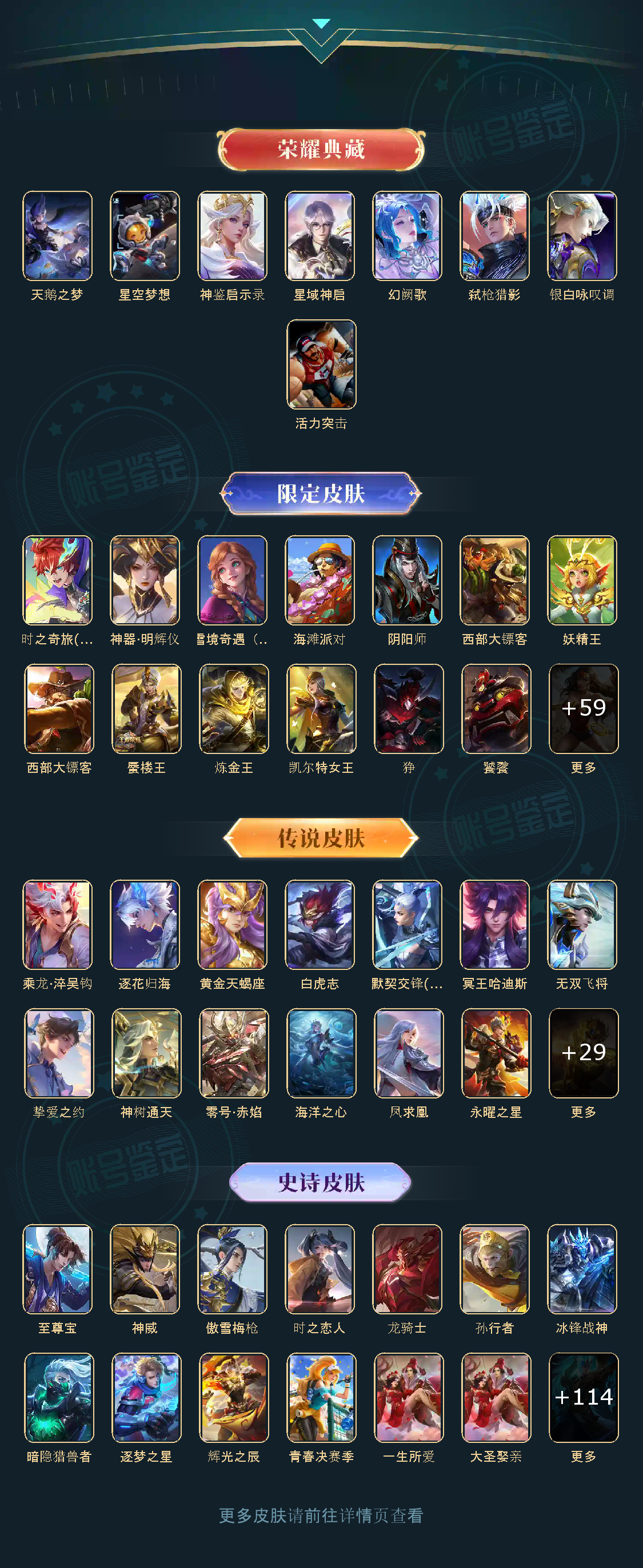天鹅之梦,星空梦想,神鉴启示录,星域神启,幻阙歌,弑枪猎影,银白咏叹调,神器·明辉仪,白虎志,默契交锋(花木兰),零号·赤焰,乘龙·淬吴钩,至尊宝,神威,冥王哈迪斯,无双飞将,挚爱之约,逐花归海,时之奇旅(孙策),黄金天蝎座,神树通天,傲雪梅枪