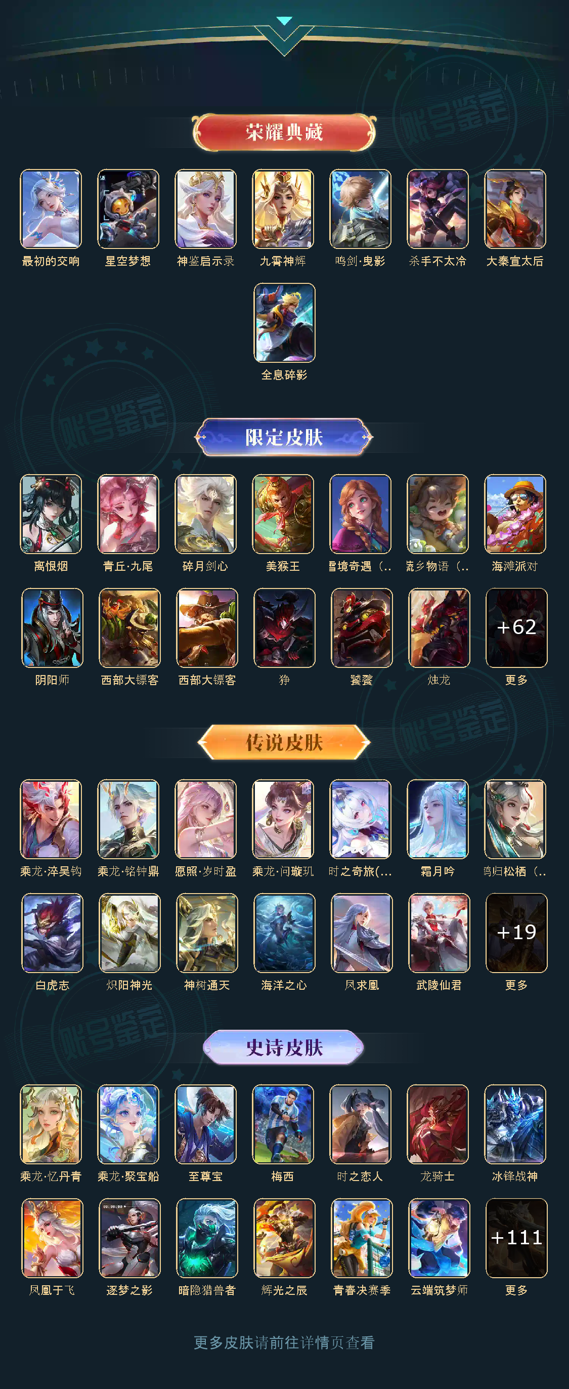 贵族等级V10,英雄数量124,典藏皮肤数8,皮肤数量399,