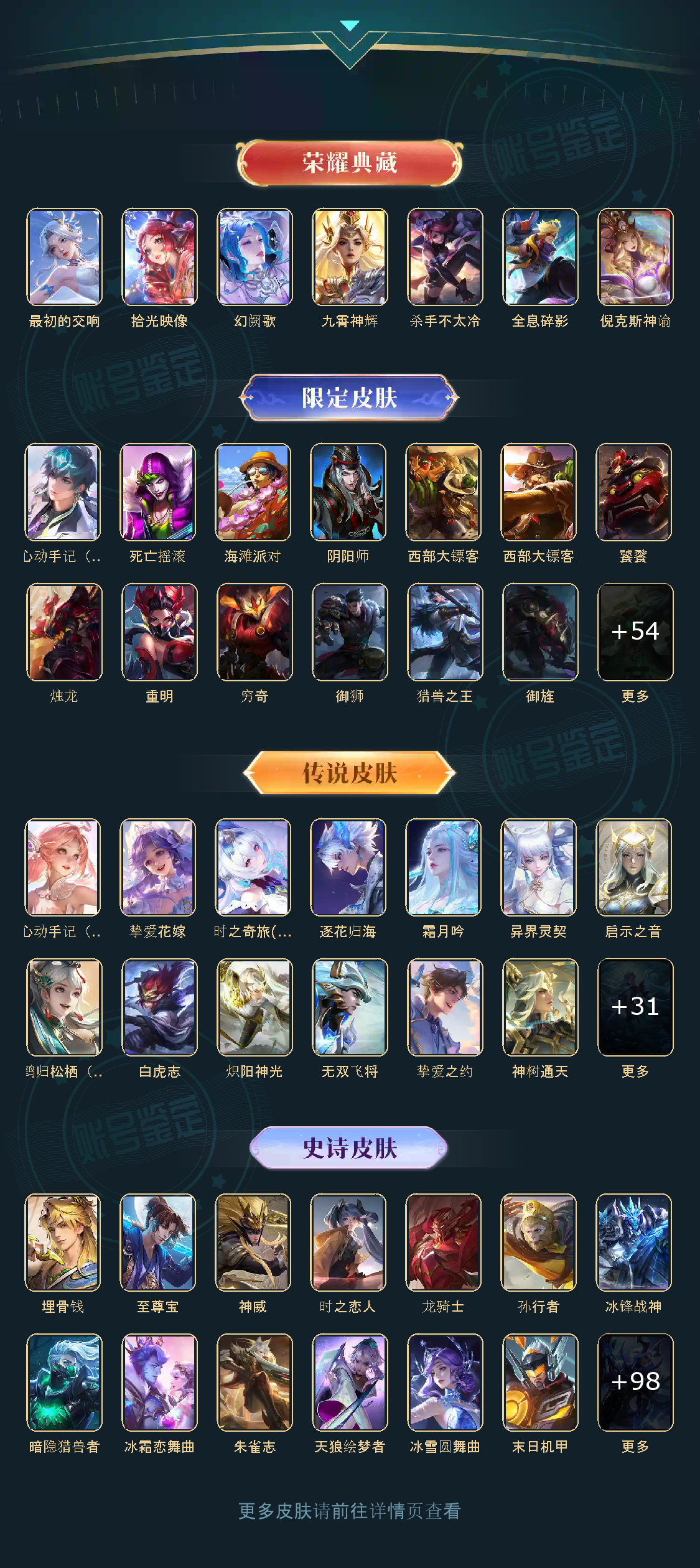 贵族等级V10,英雄数量124,典藏皮肤数6,皮肤数量362,杀手不太冷/全息碎影/倪克斯神谕