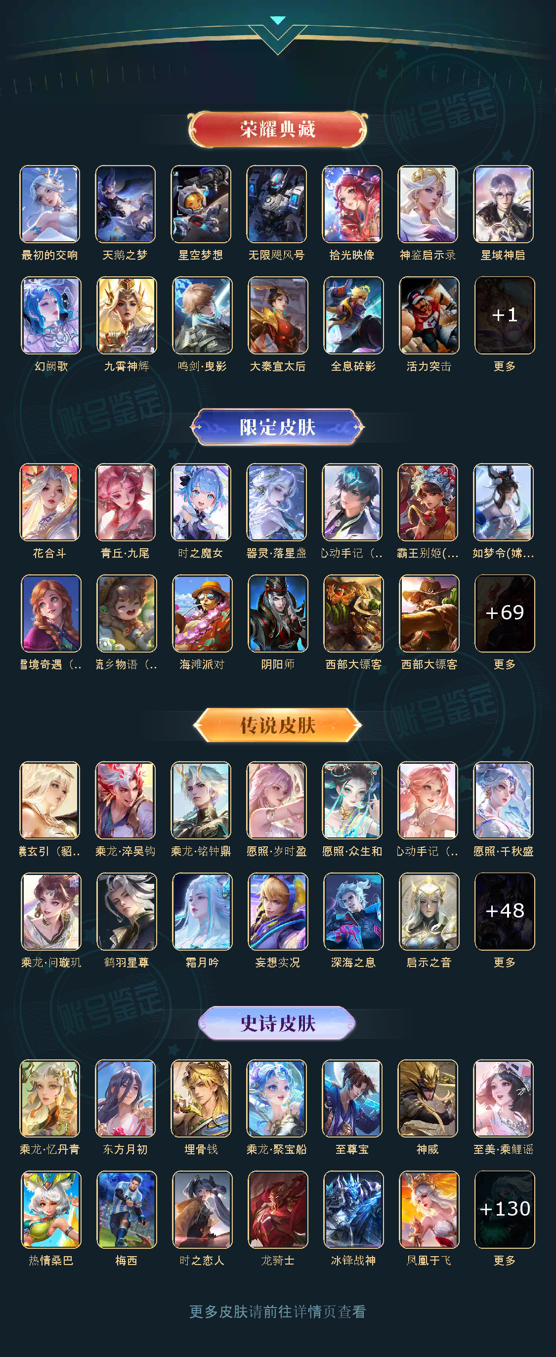 贵族等级V10,英雄数量124,典藏皮肤数13,皮肤数量477,