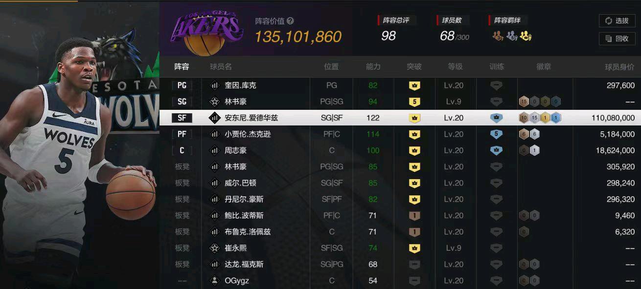 🔥【总1.36E】乔丹接班人,“华子”安东尼爱德华兹, 周志豪 小贾伦等】目前当家段位!炸鱼去吧