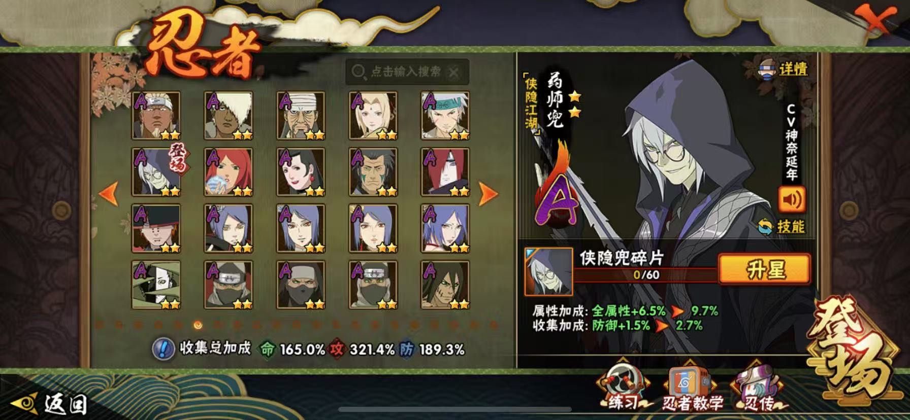 50S 400忍者 全忍者 天道超 秽土柱间 神农「羁绊」已秒 漩涡鸣人「暴怒•第六尾」宇智波佐助「侠隐江湖」宇智波斑「五影会谈」