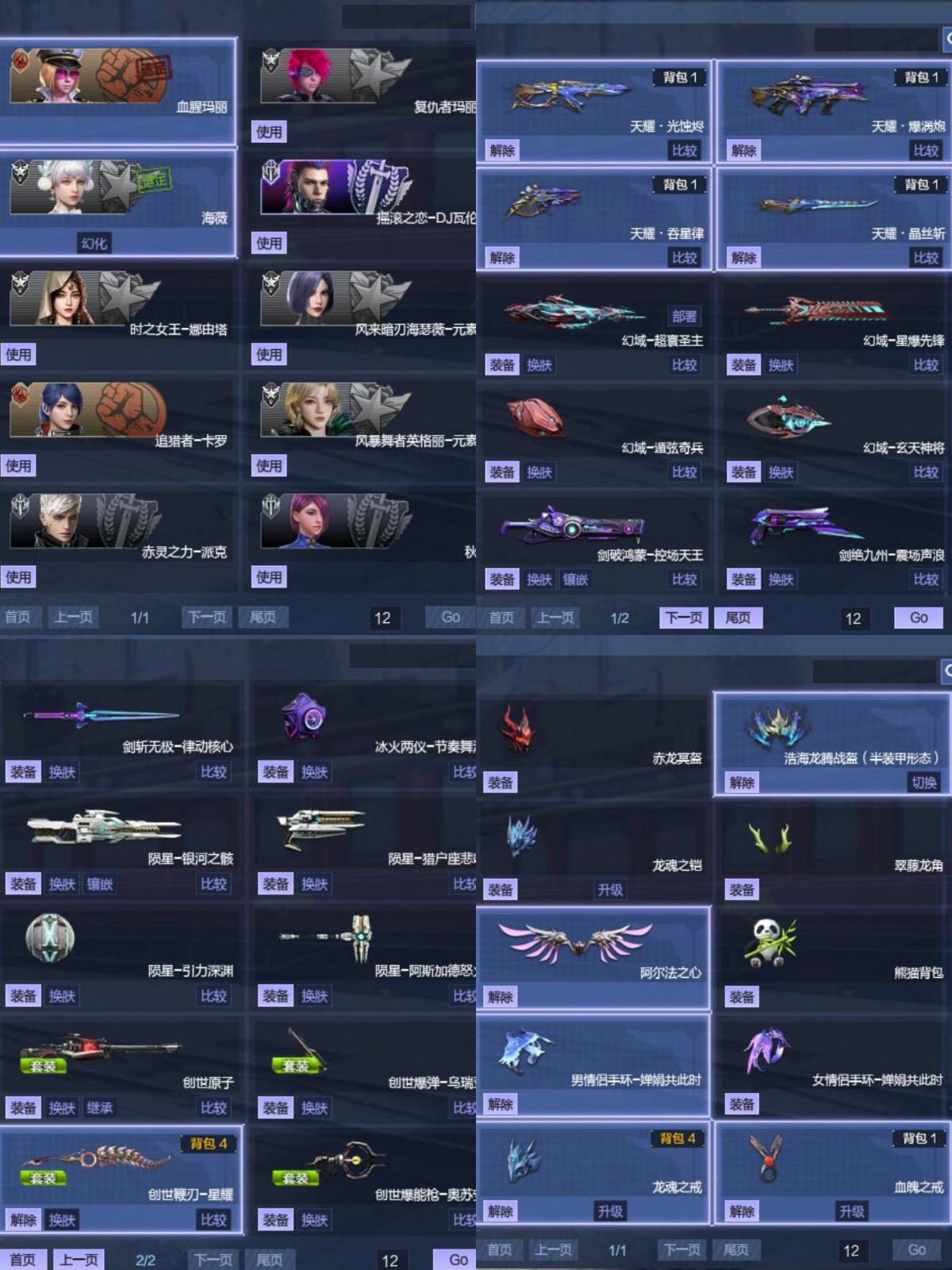 ②狙击枪:幻域超寰圣主,原子力量战意星河,地狱修罗,浴火死神,圣王主宰,巴雷特炎狱龙魂,M107混沌*3新月(试做能源、螺旋动力、蓝电、青花、涂鸦、凛冬之怒、金鳞化龙、重温旧梦、品元宵、数字矩阵),MSR武神,MSR蔷薇,鹰王MSR,MSR丘比特,掌上枪混沌缇娜,圣光裁决(骤晴、新月、寒宫萌兔、犀角射手、重温旧梦),M95飞电。