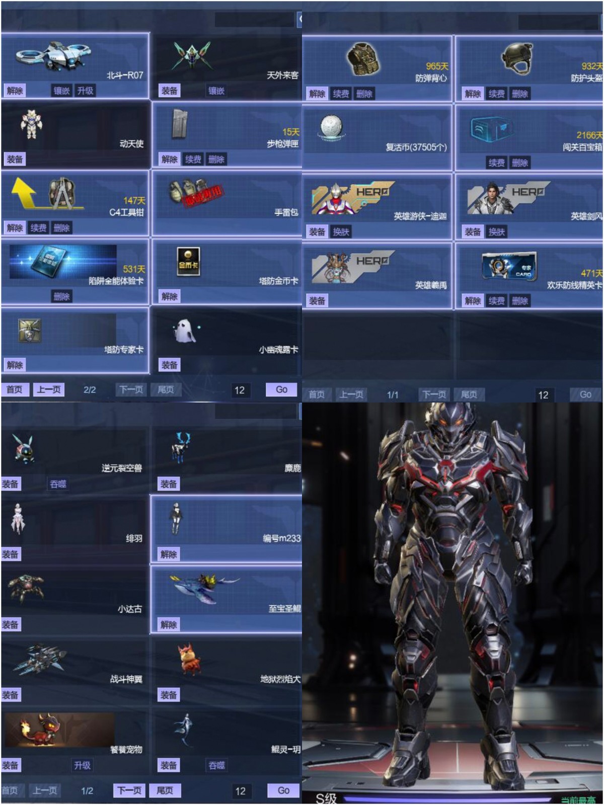 【战甲】:S级战甲凌空飞羽。满级战甲。