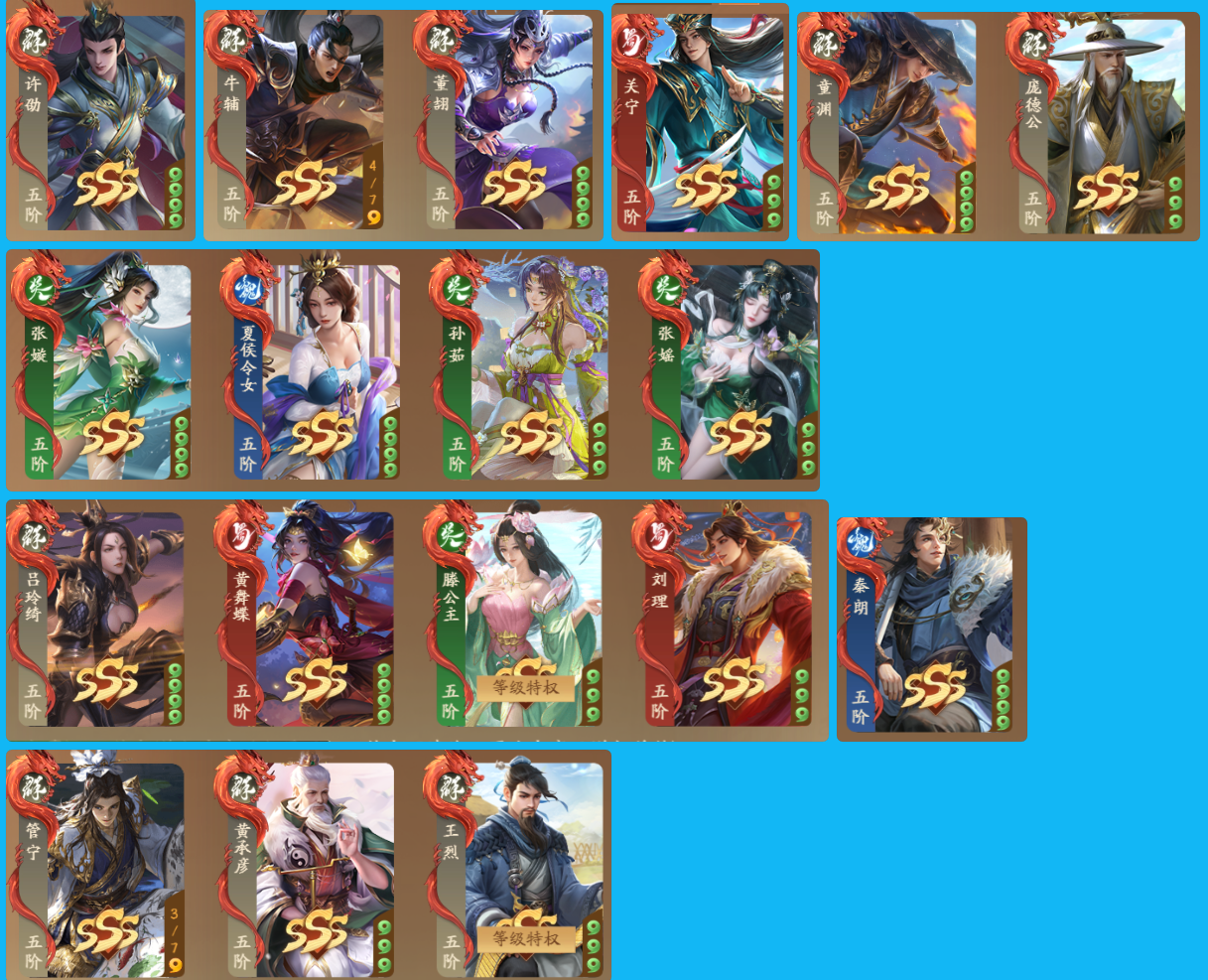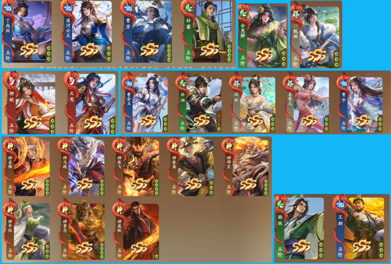 人租到时不顶 电脑手机都可以玩(不分安卓苹果)举例带特效出框动态的武将:关索赵襄三娘徐荣曹婴曹纯+许靖张瑾云神姜维神马超神张飞神张角神邓艾神庞统+曹华曹金玉薛灵** 巧笑+周宣乐蔡孙寒华管宁+孙茹。勿动背包,勿逃跑信誉分低80打不了22,