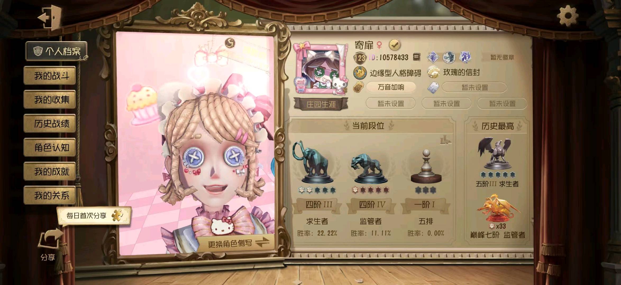- 求生者段位: 五阶