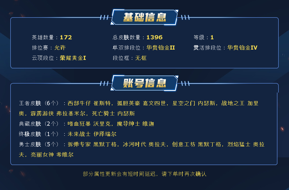 ~~喜欢记得收藏~~可排位~~1286皮全英雄丨894原皮392炫彩~~租之前尽量查一下游戏ID,确保段位是您需要的,避免浪费您的时间~~请勿挂机逃跑故意送人头,谢谢合作,谢谢~~