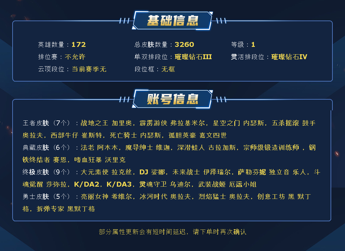 【如遇冻结】(在租号订单处点解除冻结后)请耐心等待三五分钟后重新上号试试 若我们还未解冻再劳烦撤单 感谢老板耐心配合