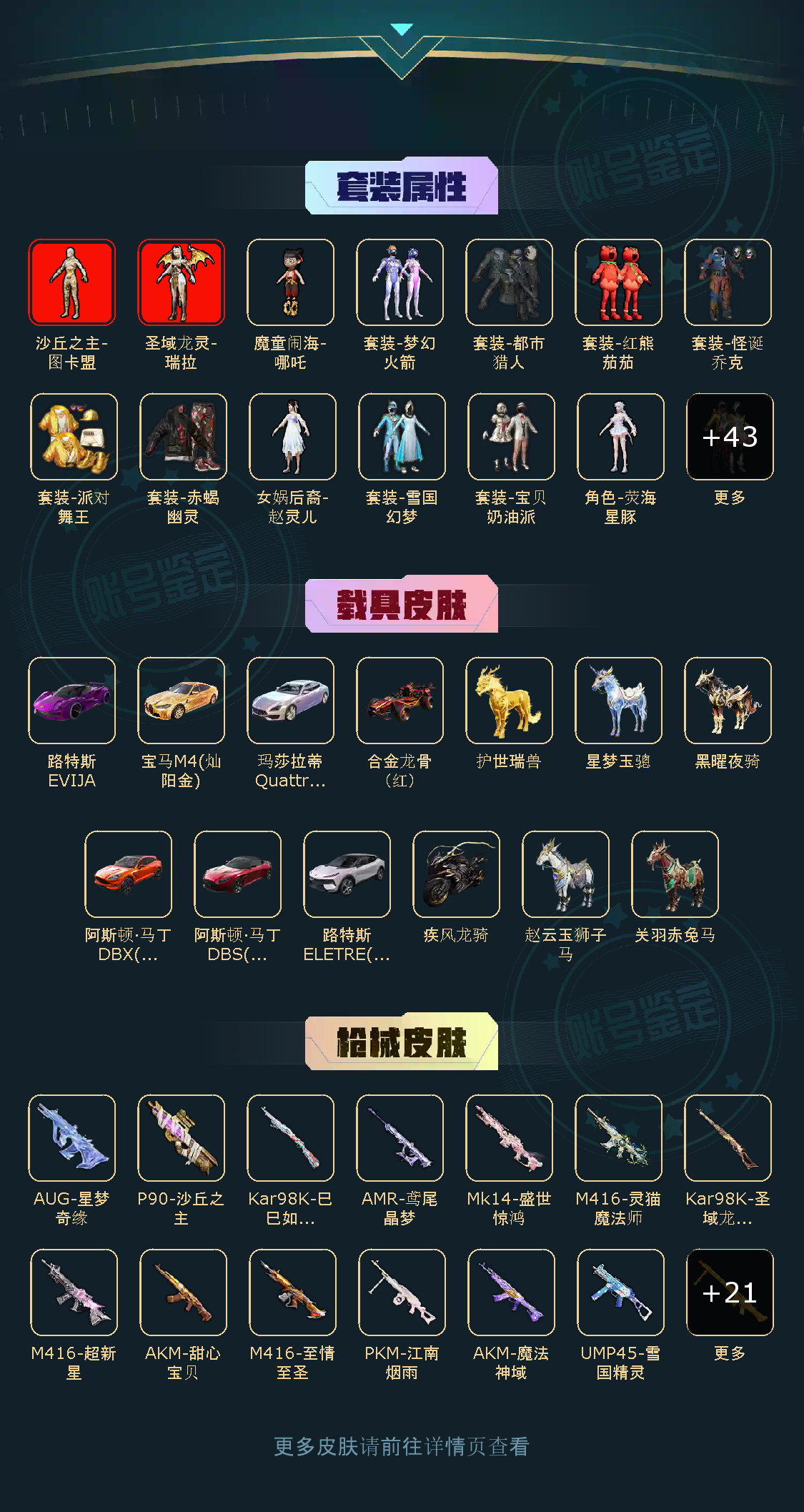 本游戏账号:不朽星钻Ⅳ段位,特效枪数量13个,粉装数量57套,载具数量12个,优质装备有: AKM-梦之光华, AKM-甜心宝贝, M416-五爪金龙, M416-暖熊萌萌, AWM-花间之火, SLR-暗夜玫瑰, 套装-极限特训, 套装-数码大师, 套装-粉色回忆, 套装-怪诞乔克, 套装-甜心巧克力, 套装-宝贝奶油派, 套装-天使彩虹糖, 套装-梦幻火箭, 套装-精灵迷巫, 套装-星之信仰, 童趣迷兔降落伞, 天之羽翼降落伞, 齐天大圣降落伞, 合金龙骨(绿), 兰博基尼Aventador SVJ(炫光金), 梦幻火箭头盔(3级), 甜心宝贝头盔(3级)等,供您畅选,感受良好游戏体验!