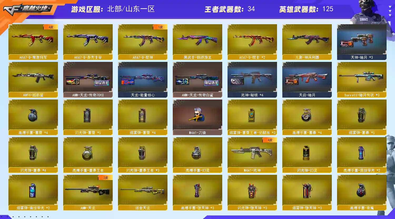 四防女帝、幻神欧欧 宠儿三件套、裁决流光三件套&星神三件套、8小柯尔特&2雷暴1冥王&4COP雷霆