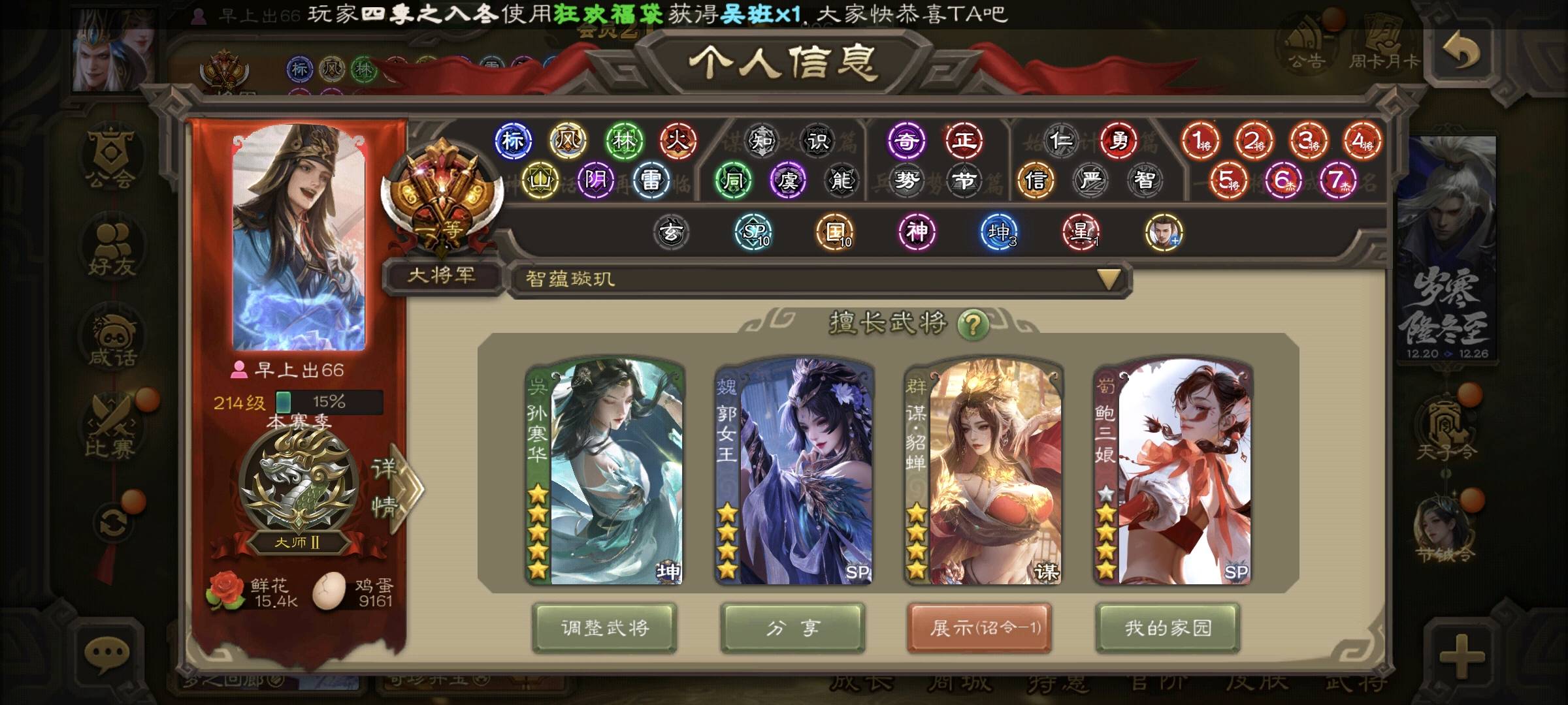 群——左慈,许攸,谋貂蝉,杜预,刘璋,界左慈,沮授,界李儒,张让,麹义,陶谦,士燮,司马徽,卑弥呼,刘焉,王允,苏飞,公孙康,兀突骨,祢衡,庞德公,郑玄,星甘宁,张仲景,黄甫嵩,界沮授,审配,徐荣,陈登,张琪瑛,灵雎,杨彪,裴秀,十常侍,星黄忠,星魏延,谋公孙瓒,友诸葛亮,星董卓,势于吉,势吕布