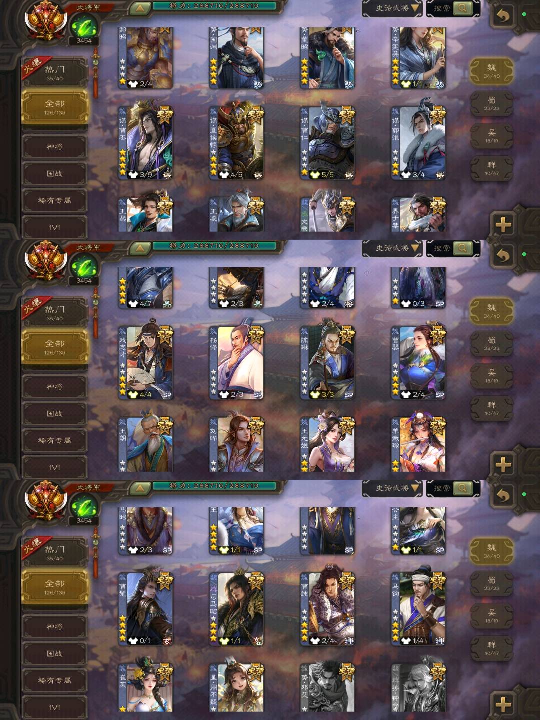 魏——郝昭,谋曹操,谋曹仁,王粲,王凌,文鸯,张昌蒲,界于禁,界钟会,界曹真,熙康,程昱,戏志才,杨修,陈琳,王朗,刘哔,王元姬,羊徽瑜,sp司马昭,曹纯,马钧,司马师,曹婴,郭女王,星周不疑,谋曹丕,蒋干,谋夏侯惇,曹髦,势董昭,势国渊,清河公主,谋郭淮,势辛宪英