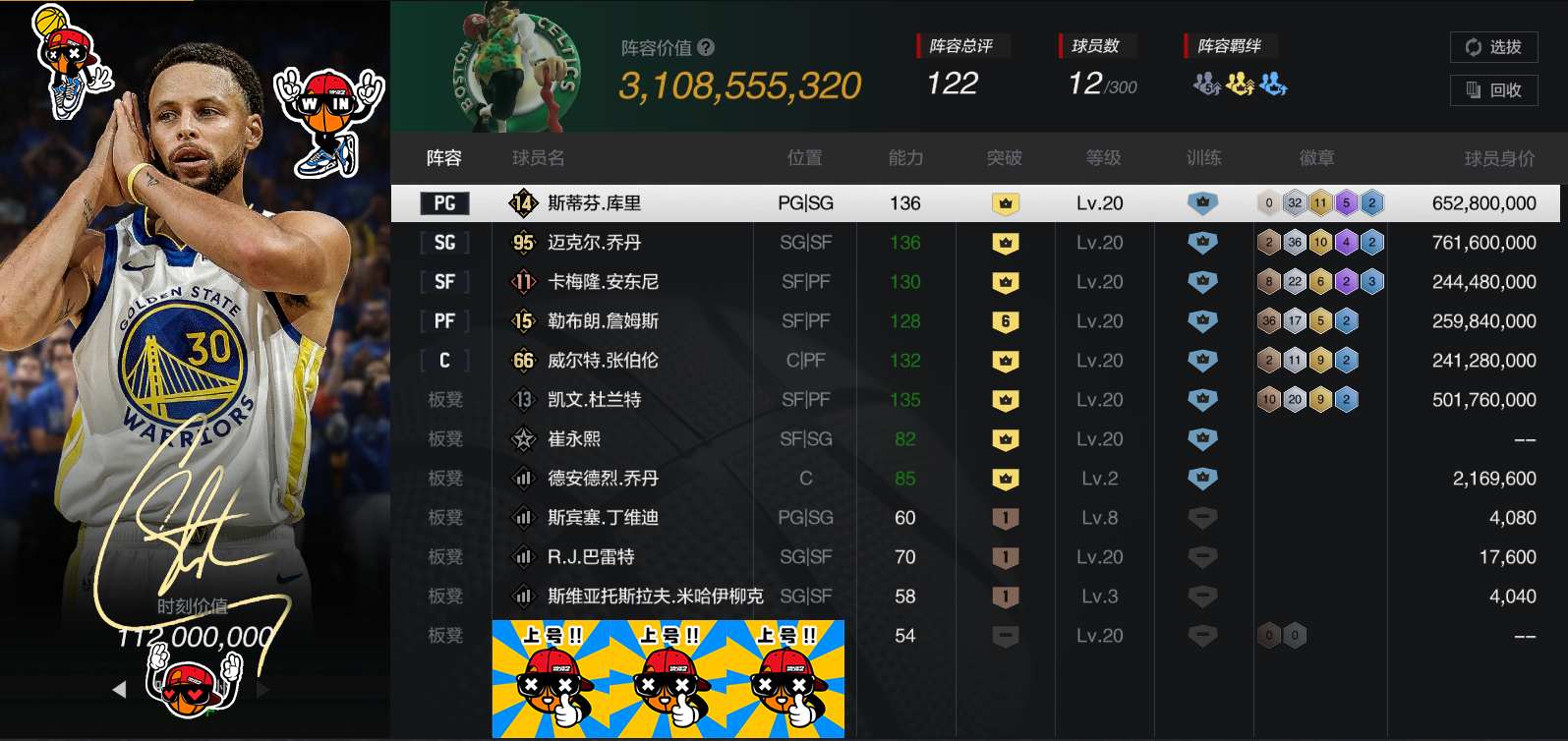 信誉分不够❤️30亿✅7大时刻紫库里❤7紫乔丹❤7紫甜瓜安东尼❤7小时刻杜兰特❤6天神詹姆斯
