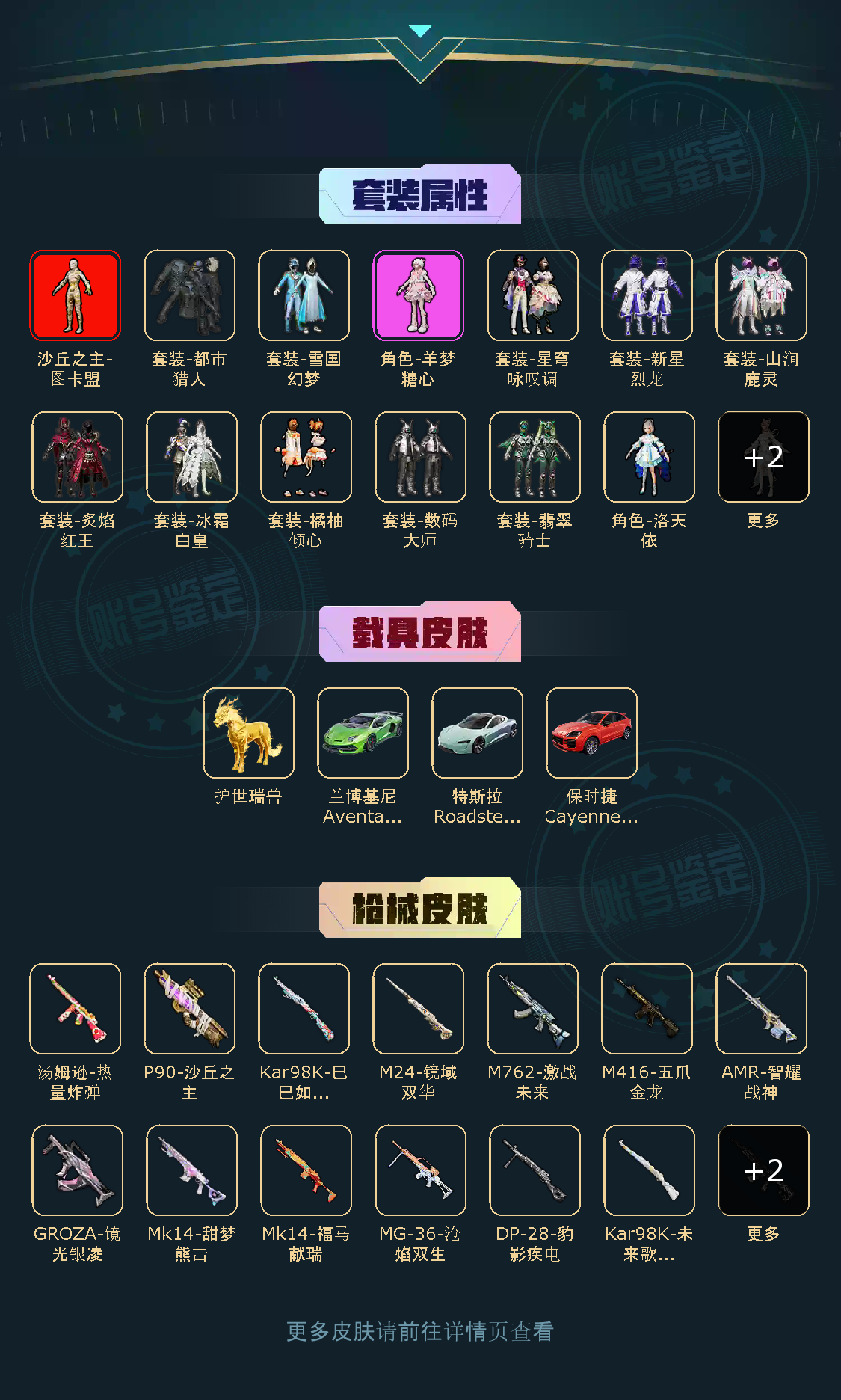 【稀有资产】沙丘之主-图卡盟[3级]/套装-雪国幻梦/角色-羊梦糖心/M416-五爪金龙/烟雾弹-猫咪绅士/M416-墨龙九天/套装-都市猎人/套装-奇异狩猎者/套装-胖达圆圆/套装-暗夜魅影/套装-粉红小猪/套装-浪漫天命/套装-潮萌小黄鸭/套装-雪山精英/套装-暗影哥特/套装-迅捷狂鲨/套装-晶辉守护/套装-缤纷假日/套装-狂沙舞者/玩偶服-懒羊羊/角色-申公豹/角色-都市丽猫/角色-摩登魅猫/角色-临安公主