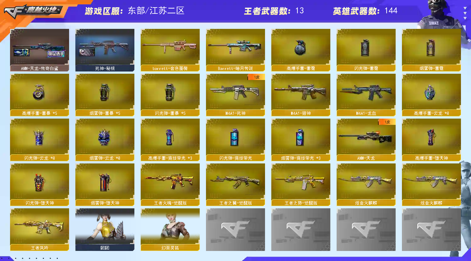雨墨等4个四防角色,传说幽瞳 传说灵眸 辉光 破晓 幽冥 4柯尔特 2usp 1cop 双蝴蝶刀 王者破空枪刃
