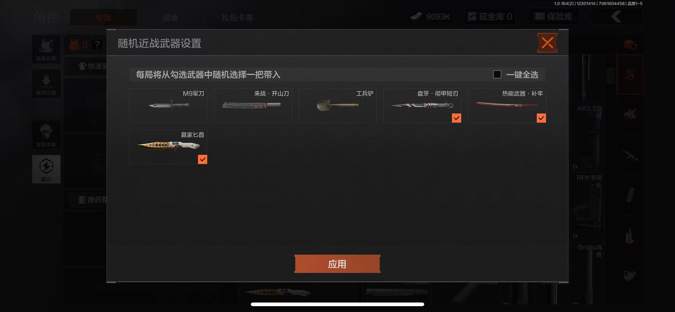 【苹果】 破产号7衣服噤声者吉利服 脉冲.马克西姆蓝色12金色枪皮刀皮3,盘牙彻甲短刃,赢家匕首,热能武器补牢