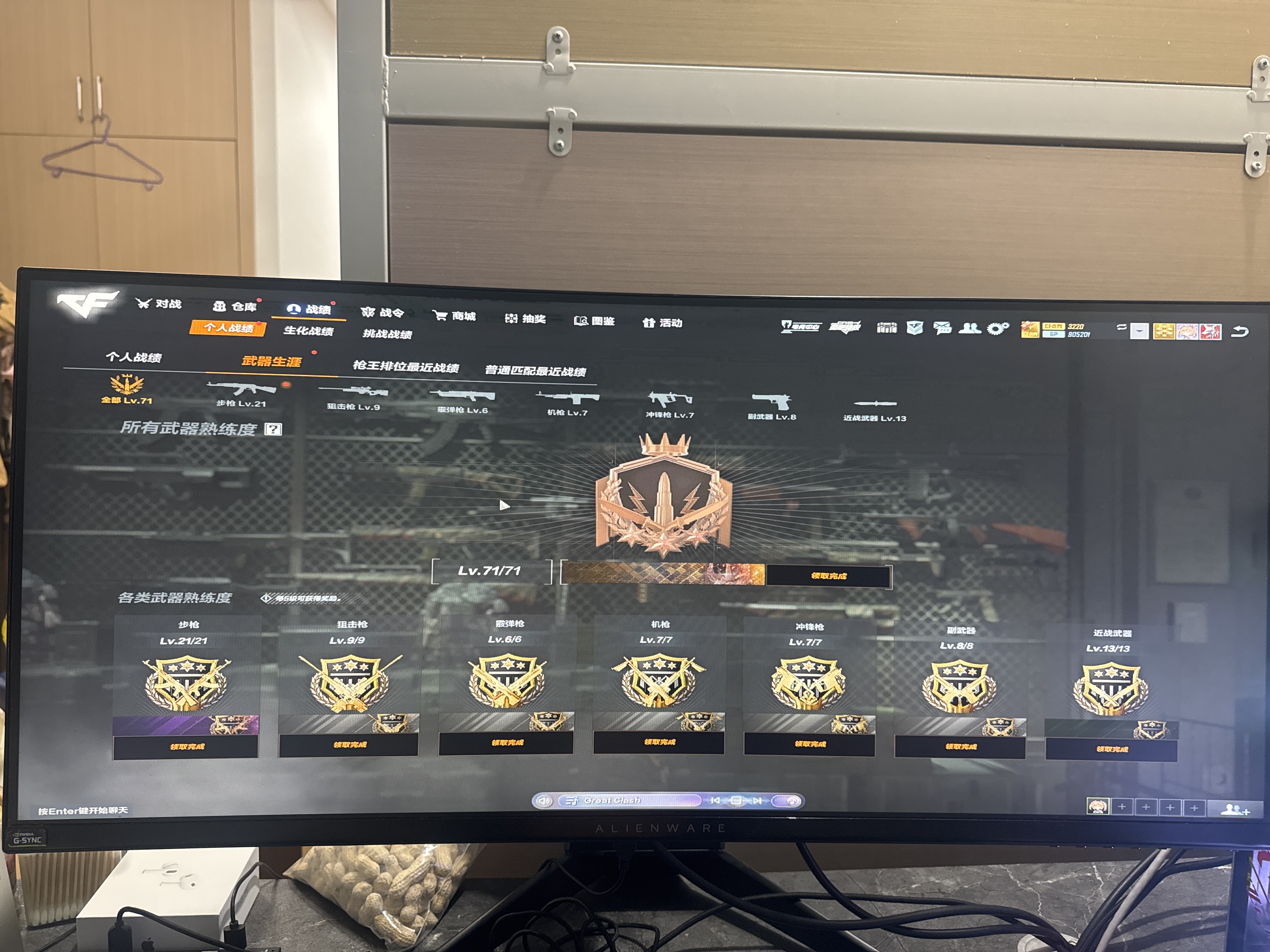 神话:VSK94星际穿越套(主满级)AK103远古神鹰套(主满级)QBZ191虹影龙心套(主3级)QBZ192混天神兵套(主满级刀3级)81式幻翼套(主3级)GALL圣光轩辕(仅有主武器2级)M14EBE灵狐(无近身武器主武器满级)M200方舟套(主满级)M411诗剑问道套(主满级)AWM狩龙极客套(主满级)