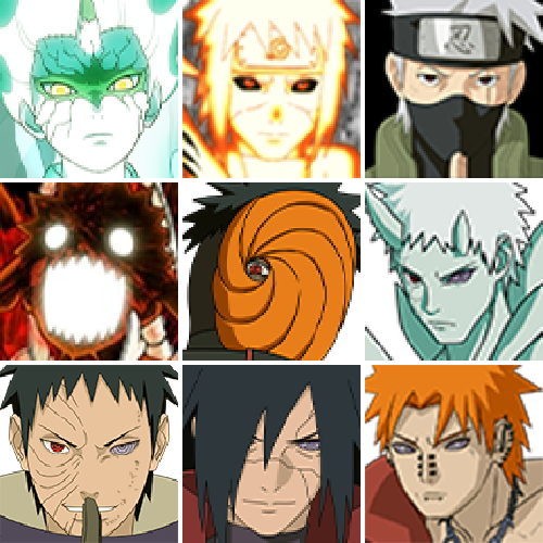宇智波斑 「秽土转生·解」 千手柱间 「木叶创立」 宇智波佐助「永恒万花筒」 神秘面具男 「红夜之刃」春野樱 「忍界大战」大筒木金式 「博人传」漩涡鸣人「九喇嘛连结」三代目风影「秽土转生」大蛇丸「百战不灭」大野木「忍界大战」迈特凯「死门」宇智波斑「木叶创立」宇智波带土「忍界大战」千手柱间「秽土转生」罗砂「四代目风影」宇智波鼬「秽土转生」自来也「舞之豪杰」佩恩·天道「超」药师兜「仙人模式」宇智波斑「秽土转生」艾「三代目雷影」宇智波斑「白面具」半藏「秽土转生」千手扉间「秽土转生」纲手「百豪」无「二代目土影」波风水门「秽土转生」金角·银角「秽土转生」猿飞日斩「秽土转生」长门「秽土转生」宇智波斑 千手柱间 艾「四代目雷影」千手扉间 神秘面具男 鬼灯幻月「二代目水影」佩恩「天道」大蛇丸 波风水门 纲手 自来也 宇智波鼬「须佐能乎」大野木「三代目土影」自来也「仙人模式」猿飞日斩