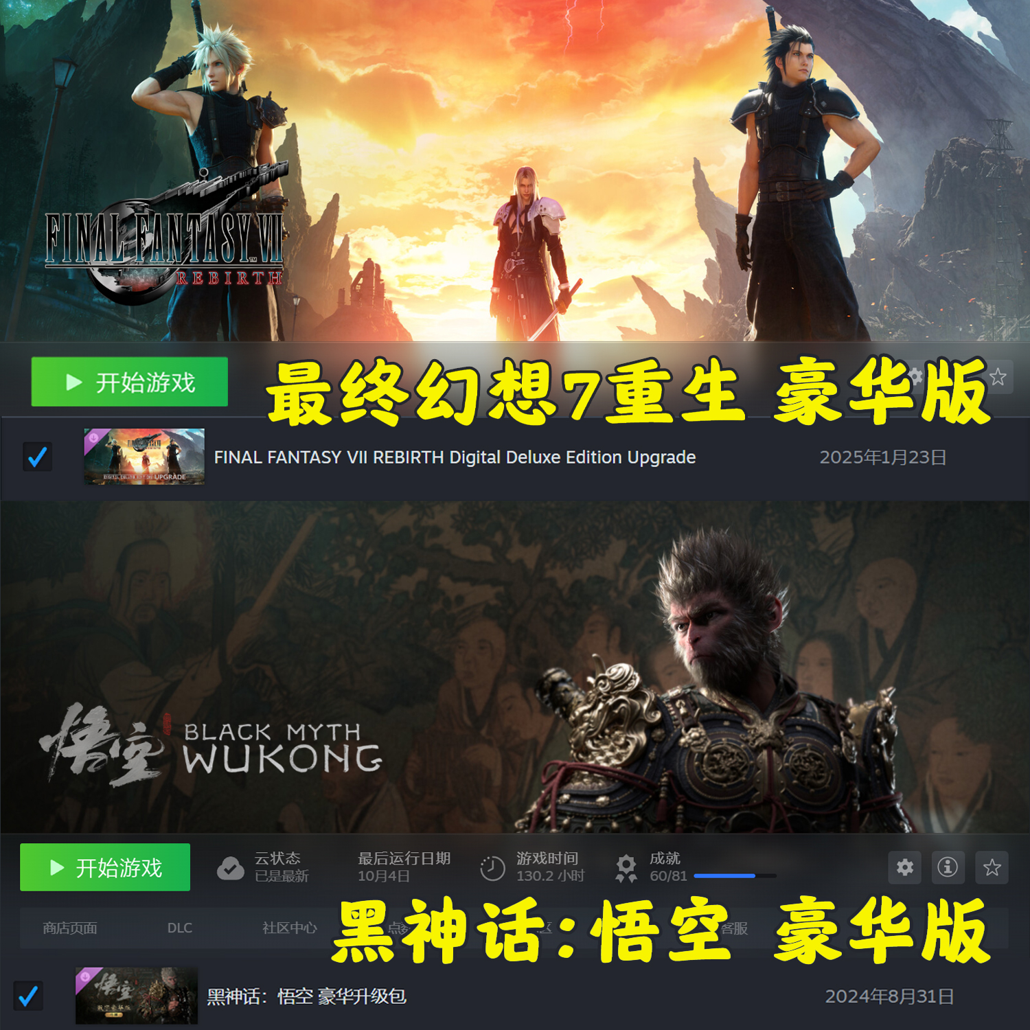 最终幻想7重生❤️598元豪华版✅含预购奖励❤️黑神话悟空豪华版✅租号包含满级全收集存档