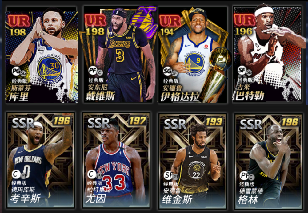 美航勇士套ur库里戴维斯浓眉,最新ssr尤因大猩猩考辛斯,ur一哥巴特勒,ssr维金斯格林巴恩斯利
