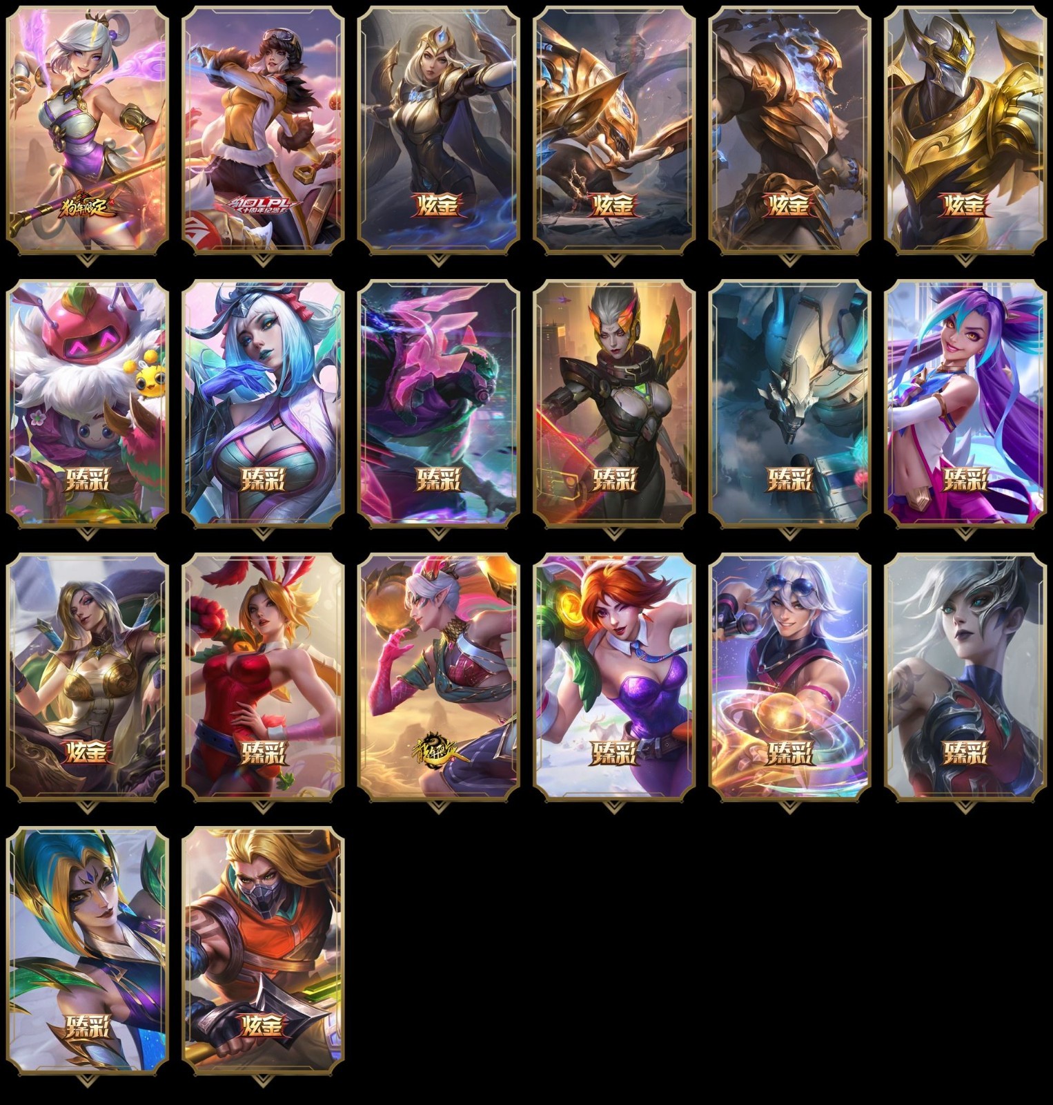【重要皮肤】西部魔影伊芙琳至臻 青花瓷千珏至臻 魔女阿卡丽至臻 魂蔷薇烈娜塔至臻 DRX亚托克斯至臻 墨之影武者亚索至臻 花仙使者卡特琳娜至臻 绝息圣堂厄运小姐至臻 剪纸仙灵希维尔至臻 太空律动魔音海妖娜美至臻 星之守护者辛德拉至臻 星之守护者艾克至臻 幻灵战斗猫金克丝至臻 青花瓷拉克丝至臻 神凰行者烈羽焰凰霞至臻 女帝黛安娜至臻 魔女婕拉至臻 魔女乐芙兰至臻 真实伤害亚索至臻 灵能特工伊泽瑞尔至臻 福牛守护者菲奥娜至臻 源计划逆流塞拉斯至臻 神龙尊者炎龙瑟提至臻 黑夜使者凯隐至臻 征服者贾克斯至臻 飞升战神潘森至臻 焰执事布兰德至臻 KDA一代卡莎至臻 KDA伊芙琳至臻 KDA阿卡丽至臻 电玩女神凯特琳至臻 星之守护者妮蔻至臻 星之守护者妮蔻2022至臻 真实伤害奇亚娜至臻 未来战士锤石至臻 未来战士锤石2022至臻 黑夜使者李青至臻 黑夜使者李青2022至臻 殿堂传奇乐芙兰 灰烬守护者慎 灰烬骑士派克 海克斯科技安妮 海克斯科技瑟庄妮 海克斯科技雷克顿 海克斯科技吉格斯 海克斯科技玛尔扎哈 海克斯科技阿利斯塔 海克斯科技魔腾 水晶圣骑蕾欧娜 暗星科加斯 黎明使者卡尔玛 恐惧新星德莱厄斯 零之枪骑赫卡里姆 胜利剑圣易 胜利女神娑娜 胜利之王泰达米尔 胜利巨口克格莫 舞会公主安妮 养蜂人辛吉德 勇敢的心德莱厄斯 电玩女神厄运小姐 电玩女神阿狸 玉剑传说无影 玉剑传说无劫 玉剑传说翼剑仙 星之守护者佐伊 灵能特工易 天龙之子斯莫德 替父从军花木兰 古琴余韵娑娜 春晖神女拉克丝 北辰之威内瑟斯 南天之怒沃里克 美猴王孙悟空 定海神珍孙悟空 玉净夜叉凯特琳 紫金罗刹莫甘娜 广寒仙子嫦娥 虎痴之拳蔚 张辽文远 烈焰美人薇恩 纳财大帝塔姆 王国机神玄武盖伦 胜利女神瑟庄妮 胜利女神奥莉安娜 胜利枪神格雷福斯 胜利枪神卢锡安 胜利之剑亚托克斯 觅心猎手薇恩 寒冬精灵璐璐 冬季仙境奥莉安娜 雪球也能爆炸吉格斯 圣诞老人布隆 冰雪风暴希维尔 冬季仙境卡尔玛 魄罗骑士瑟庄妮 平安夜女神娑娜 圣诞糖果棒厄运小姐 魅惑女巫赛娜 魅惑女巫奈德丽 死亡誓约劫 死亡誓约维克托 灵魂收割者索拉卡 克烈古拉伯爵 南瓜头王子阿木木 勇敢的心德莱厄斯 海之歌永恩 泳池派对普朗克 泳池派对辛德拉 泳池派对黑默丁格 泳池派对厄运小姐 泳池派对菲奥娜 泳池派对格雷福斯 泳池派对李青 泳池派对蕾欧娜 泳池派对雷克顿 电玩战魂赫卡里姆 制胜金靴李青 EDG悠米 iG卡蜜尔 iG洛 iG卡莎 iG艾瑞莉娅 iG乐芙兰 iG菲奥娜 SKTT1扎克 SKTT1辛德拉 SKTT1奥拉夫 SKTT1瑞兹 SKTT1阿兹尔 SKTT1雷克顿 SSW锤石 SSW雷恩加尔 SSW辛吉德 SKTT1贾克斯 SKTT1劫 SKTT1婕拉 SKTT1李青 暗杀星蒙多 暗杀星努努和威朗普 暗杀星伊泽瑞尔 暗杀星慎 Fnatic迦娜 Fnatic库奇 Fnatic古拉加斯 Fnatic嘉文四世 Fnatic卡尔萨斯 冰雪节格雷福斯 冰雪节玛尔扎哈 冰雪节辛吉德 冰雪兽纳尔 防暴机器人布里茨 防暴士兵格雷福斯 防暴士兵辛吉德 防暴天使凯尔 钢铁之翼艾尼维亚 冠军典狱长锤石 冠军掠夺者卡兹克 冠军之矛卡莉丝塔 冠军之刃锐雯2016 冠军之血希瓦娜 冠军之隐劫 冠军之志瑞兹 鬼影森森茂凯 鬼影重重魔腾 海贼瑞兹 警用试作体K9内瑟斯 密林猎手提莫 南瓜头费德提克 女猎手希维尔 破空枪骑孙悟空 圣诞精灵崔丝塔娜 圣诞开心鬼提莫 圣诞狂欢基兰 圣诞老人古拉加斯 圣诞玩偶波比 圣诞驯鹿克格莫 外星装甲库奇 无头骑士赫卡里姆 喜庆之树茂凯 邪恶圣诞老人维迦 幸福女神乐芙兰 雪默丁格 雪球也能爆炸吉格斯 野兽猎人德莱文 野兽猎人瑟庄妮 野兽猎人泰达米尔 英勇玩具兵普朗克 征服者韦鲁斯 暗影沃里克 冠军之箭艾希 阿木木主人不要我了 波比的巧克力工坊 地底世界崔斯特 都铎王朝图奇 十周年纪念安妮 源代码乐芙兰 神凰行者瑞羽圣凰艾尼维亚 胜利凤凰艾尼维亚 DJ娑娜 灵魂守卫乌迪尔 未来战士伊泽瑞尔 绝息圣堂洛