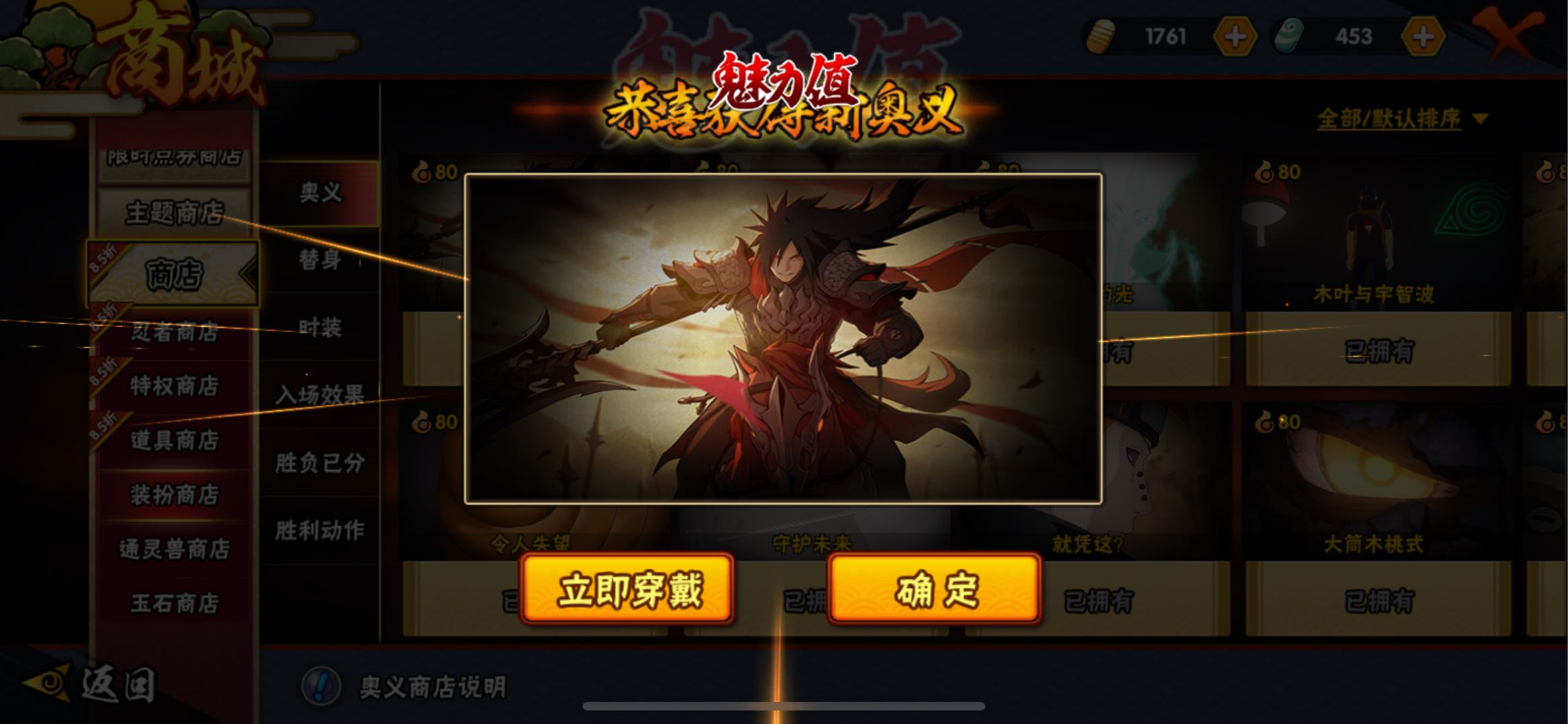 宇智波斑「神驹佑将」已秒,有带帽虎皮时装,648十尾带土奥义