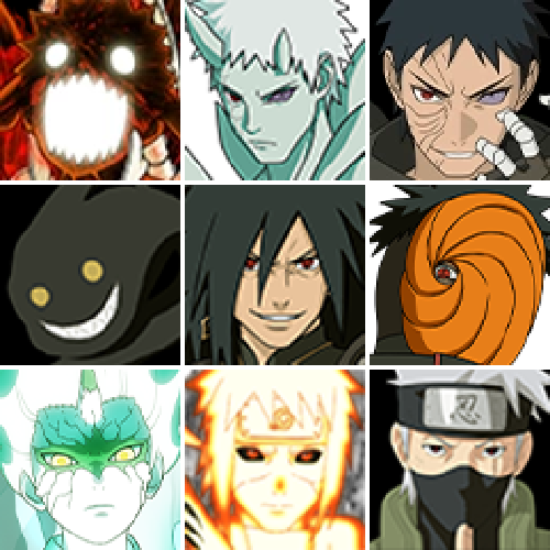 宇智波斑 「秽土转生·解」 千手柱间 「木叶创立」 宇智波佐助「永恒万花筒」 神秘面具男 「红夜之刃」春野樱 「忍界大战」大筒木金式 「博人传」漩涡鸣人「九喇嘛连结」三代目风影「秽土转生」大蛇丸「百战不灭」大野木「忍界大战」迈特凯「死门」宇智波斑「木叶创立」宇智波带土「忍界大战」千手柱间「秽土转生」罗砂「四代目风影」宇智波鼬「秽土转生」自来也「舞之豪杰」佩恩·天道「超」药师兜「仙人模式」宇智波斑「秽土转生」艾「三代目雷影」宇智波斑「白面具」半藏「秽土转生」千手扉间「秽土转生」纲手「百豪」无「二代目土影」波风水门「秽土转生」金角·银角「秽土转生」猿飞日斩「秽土转生」长门「秽土转生」宇智波斑 千手柱间 艾「四代目雷影」千手扉间 神秘面具男 鬼灯幻月「二代目水影」佩恩「天道」大蛇丸 波风水门 纲手 自来也 宇智波鼬「须佐能乎」大野木「三代目土影」自来也「仙人模式」猿飞日斩