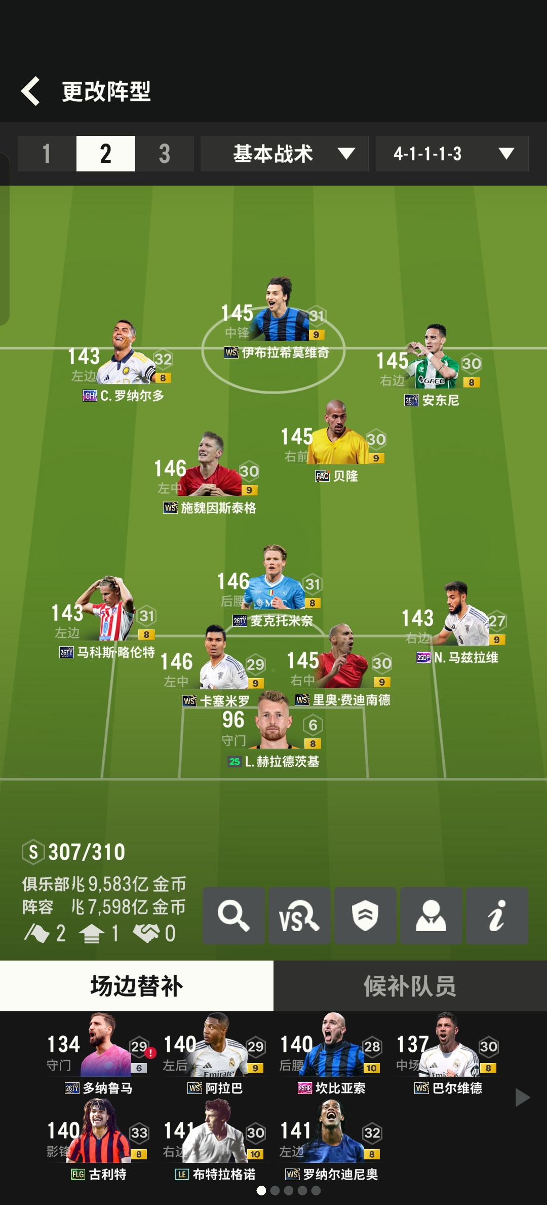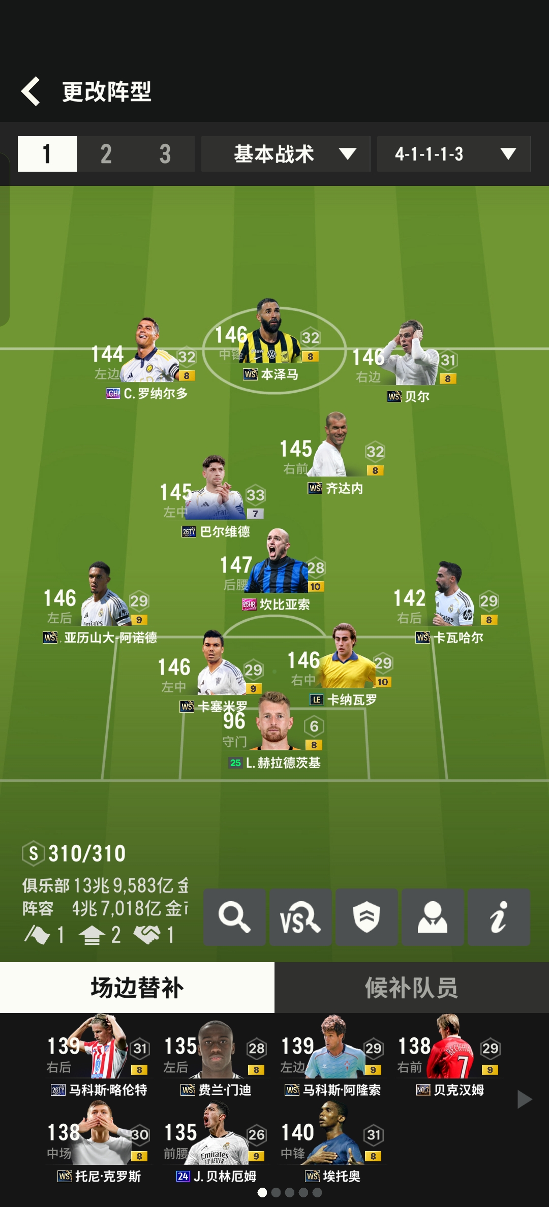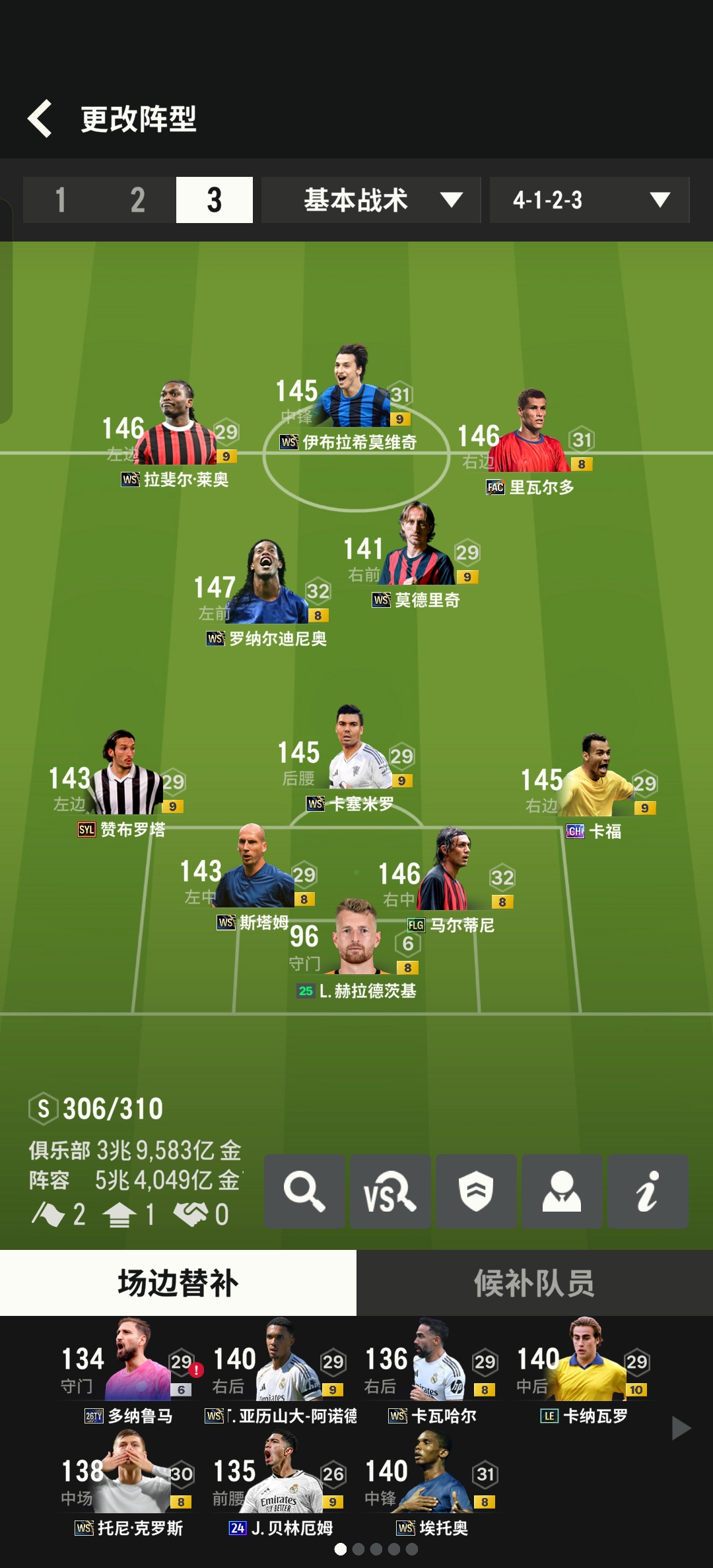 16兆皇马套和曼联套,米兰FC(皇马BBC组合)基本WS卡 替补候补球员齐全二级密码:1020