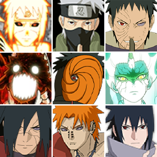 宇智波斑 「秽土转生·解」 千手柱间 「木叶创立」 宇智波佐助「永恒万花筒」 神秘面具男 「红夜之刃」春野樱 「忍界大战」大筒木金式 「博人传」漩涡鸣人「九喇嘛连结」三代目风影「秽土转生」大蛇丸「百战不灭」大野木「忍界大战」迈特凯「死门」宇智波斑「木叶创立」宇智波带土「忍界大战」千手柱间「秽土转生」罗砂「四代目风影」宇智波鼬「秽土转生」自来也「舞之豪杰」佩恩·天道「超」药师兜「仙人模式」宇智波斑「秽土转生」艾「三代目雷影」宇智波斑「白面具」半藏「秽土转生」千手扉间「秽土转生」纲手「百豪」无「二代目土影」波风水门「秽土转生」金角·银角「秽土转生」猿飞日斩「秽土转生」长门「秽土转生」宇智波斑 千手柱间 艾「四代目雷影」千手扉间 神秘面具男 鬼灯幻月「二代目水影」佩恩「天道」大蛇丸 波风水门 纲手 自来也 宇智波鼬「须佐能乎」大野木「三代目土影」自来也「仙人模式」猿飞日斩
