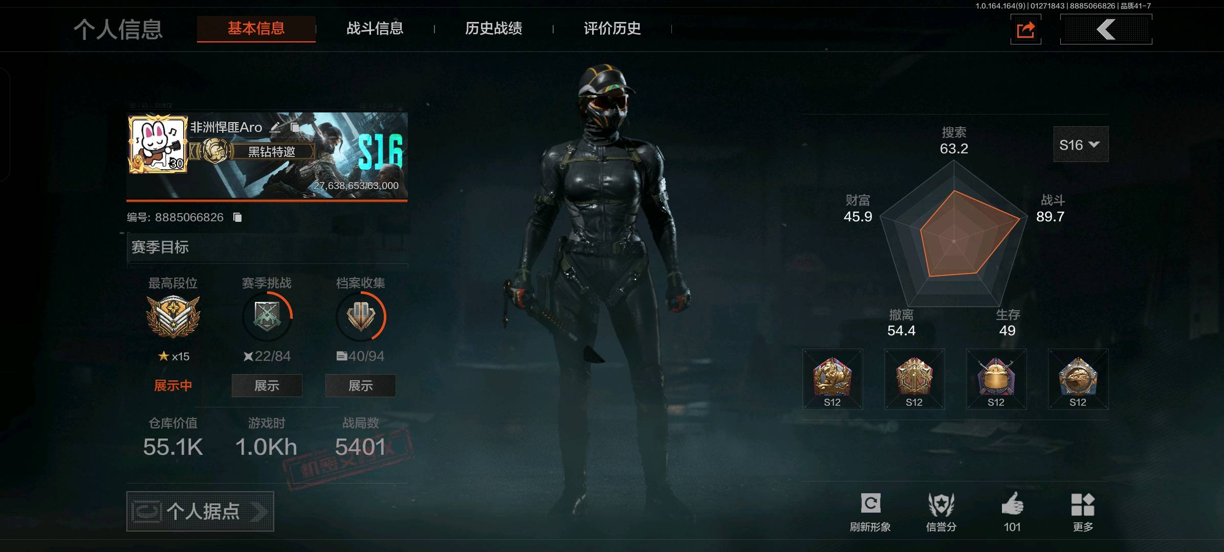黑钻6级,6把氪金刀皮,新红皮侠还有四个金色角色皮肤,十几把金枪皮充值八千多。