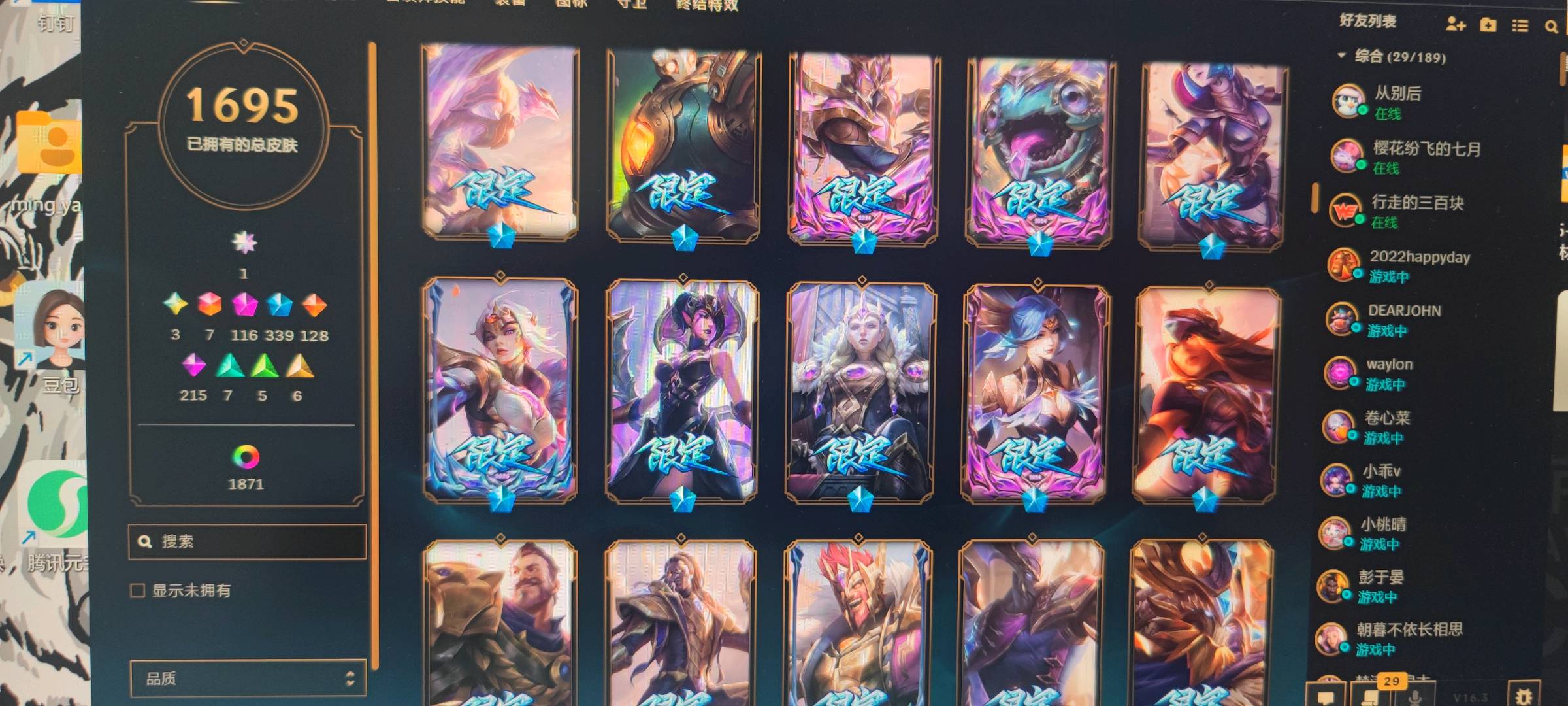 高端号1695原皮-艾欧尼亚-圣堂瑟提、铁男、金克斯-5色龙虾-116神话-339限定-云顶20神话