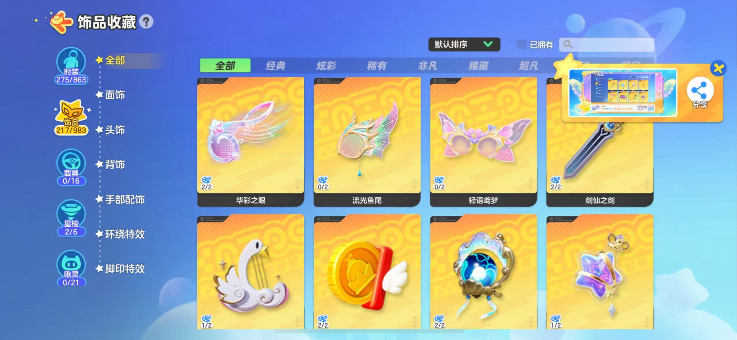 【苹果】 编号182/时尚分8W➕有至臻皮 狐剑仙 小龙女 尤诺亚 海女和大翅膀(永恒之翼、星梦使者)
