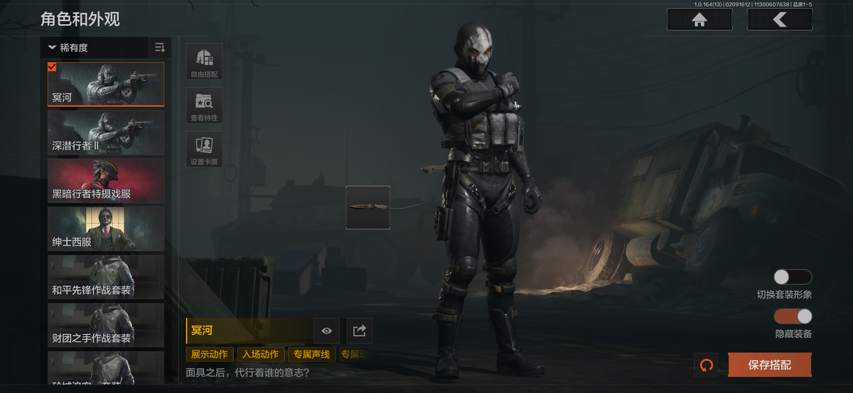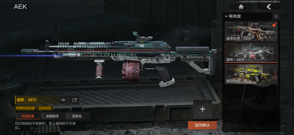 历史最高段位:暗区传说【角色皮肤】:冥河,深潜行者Ⅱ,黑暗行者特摄戏服,绅士西服,和平先锋作战套装,财团之手作战套装,砼城浪客套装,都市夜影套装,森林守望特种服,林地作战服;【近战武器】:赢家匕首,涂鸦利刃,明刀绣春,急袭弯刀,精英指虎,来战开山刀,工兵铲;【手套】:战术甲胄防护手套;【突击步枪】:棱光裂变AKM,火力倾泻AKM,来战AKM,骑士之剑AKM,冻土条纹AKM,深暗星云M4A1,巅峰M4A1,德尔塔小队M4A1,战术大师M4A1,战术大师FAL,真实之眼FAL,秋宴FAL,炎夏浪花H416,自喷网格H416,竞技MDR,北国内卫MDR,调色盘MDR,鱼跃丹青AK102,棱光裂变AK102,玄墨披挂AK102,棱光裂变AK74N,战术大师AK74N,白狼连队AK74N,来战AK74N,山地伪装AK74N,竞技数码AK74N,骑士之剑AKS74U,龙影AKS74U,火力倾泻AUG,竞技AUG,极恶AUG,自喷网格AUG,深潜F2000,危崖敌影F2000,赢家F2000,雪山之王F2000,醒目提示F2000,炎夏浪花AR57,电动工具AR57,财团之手AR57,无声暗月AR57,动感舞步ACE31,轰炸小子ACE31,棱光裂变ACE31,骑士之剑ACE31,竹绿电晶ACE31,战术大师AEK,旗帜AEK,最后防线AEK,粉绒臻选AN94,起火点AN94,北国内卫AN94,近卫标记Groza,虎纹Groza,绿松石数码Groza,虎纹FAMAS,伦琴计量SCAR,四色花SCAR,飞鲨T951,青瓷涂层T951,绿松石数码T951,森林迷彩T951,冻土条纹T951,骑士之剑T03,林地数码T03,深潜T03,虎纹T03,沙漠数码T03,格勒涂装AK12,北国内卫AK12,鱼跃丹青MCX,旧王圣谕QBZ191,战术大师QBZ192,绿松石数码9A91,绿海猎手AR15,宝石籽料AR15;【冲锋枪】:猩红抓痕MP5,无声暗月MP5,龙威MP5,火力倾泻MP5,空勤特遣MP5,雪山之王MPX,涂鸦MPX,危崖敌影MPX,起火点MPX,无彩调色P90,洞窟遗迹UZI,洞窟遗迹UMP45,自喷网格UMP45,滑雪季UMP45,洞窟遗迹UMP45,大理石MP40,玄墨披挂MAC10,北国内卫MAC10,多边棱彩MAC10,危险地带T79,绿蟒Vector45,北国内卫Vector45,多边棱彩Vector45,沙色Vector45,绿松石数码T85,鱼跃丹青T85,山地伪装Vector9,龙影Suomi,滑雪季Suomi,战术大师Suomi;【射手步枪】:旗帜SVDS,雪原凌锋SVDS,玄墨披挂SVDS,骑士之剑VSS,猩红羽翼VSS,飞鲨VSS,白狼连队VSS,炎夏浪花VSS,典礼武备MK14,山地伪装MK14,海洋数码MK14,骑士之剑MK14,旗帜脉冲M110,全地形数码M110,大理石M110,竞技M110绿松石数码DBR,绿松石数码QBU191,鱼跃丹青QBU191,棱光裂变QBU191,大理石QBU191;【栓动步枪】:棱光裂变莫辛,竹绿电晶莫辛,滑雪季莫辛,无声暗月AX50,轰炸小子AX50,北国内卫AR30,城市数码SJ16,骑士之剑SJ16,大理石SJ16,绿松石数码SJ16,滑雪季M24;【轻机枪】:近卫荣耀RPK16,战术大师RPK16,旗帜RPK16,北国内卫RPD,多边棱彩M249,虎纹M249;【霰弹枪】:渡鸦M870,多边棱彩M870,竹绿电晶MP133,玄墨披挂MP133,北国内卫MP133,宝石籽料S12K,水陆迷彩S12K,胜利S12K,危险地带S12K,醒目提示S12K,营房暖冬USAS12,真实之眼SPR310,醒目提示SPR310,四色花DP12,雪原凌锋DP12;【卡宾枪】绿松石数码SKS,粉绒臻选SKS,异彩合金M14,多边棱彩M96,滑雪季BM59,虎纹BM59,沙海SVTU,北国内卫M16;【手枪】:碳黑M9A3,盾蟒G18C,雪山之王G18C,过江龙G18C,午夜梦魇G18C,秩序G18C,赢家G18C,大理石MP9,骑士之剑沙漠之鹰,北国内卫沙漠之鹰,绿松石数码沙漠之鹰,洞窟遗迹沙漠之鹰,青瓷涂层T05,水蓝F57,滑雪季F57,深潜F57,醒目提示F57,香蕉M300,碳黑M300;