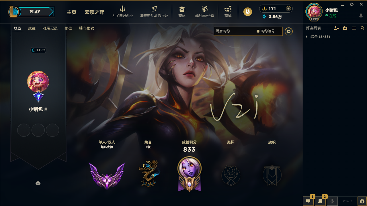 超凡大师█ 2000皮█艾欧尼亚█38臻█极品下棋号█马年限定█龙虾琴刀█手办猫猫猪妹头像