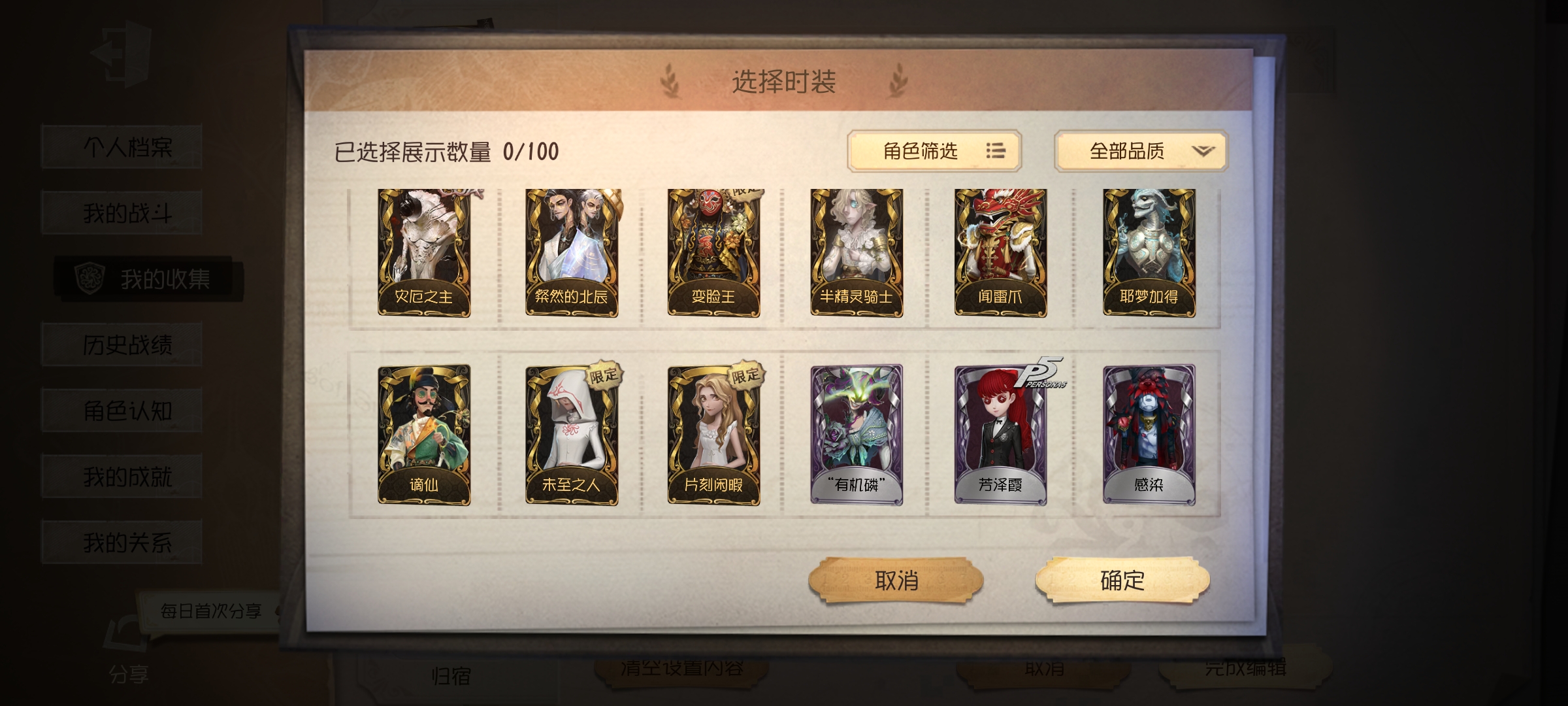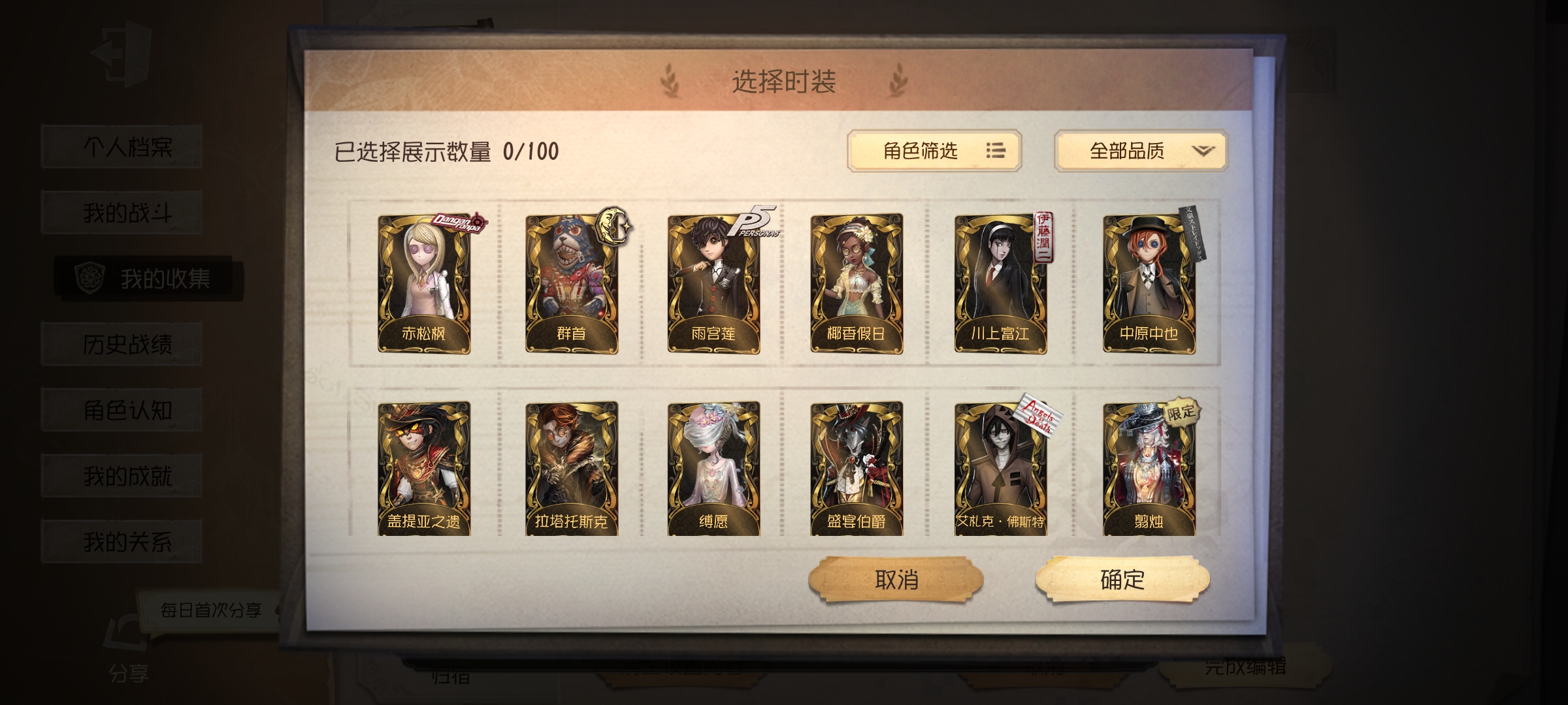 【安卓】 21金,雨宫莲,中原中野,赤松枫,skull,扎克求生者是前锋和勘探皮肤多,监管者杰克皮肤多,都有