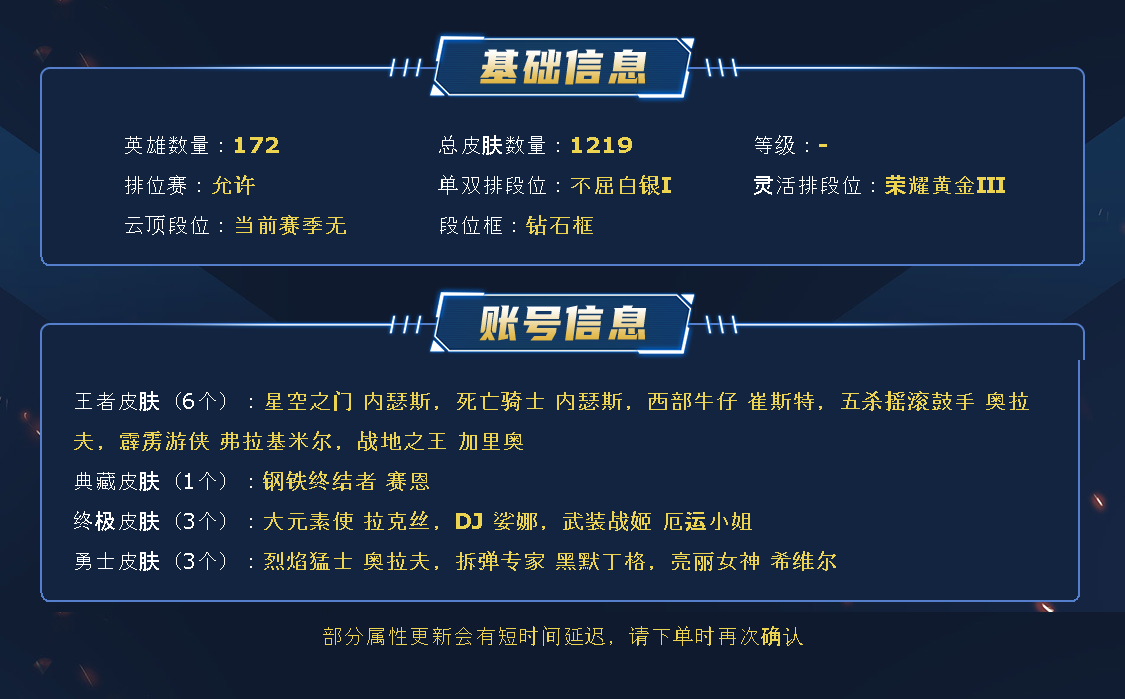 746皮肤 3终极 101限定 79传说 120史诗 1卓越,高质量黑玫账号